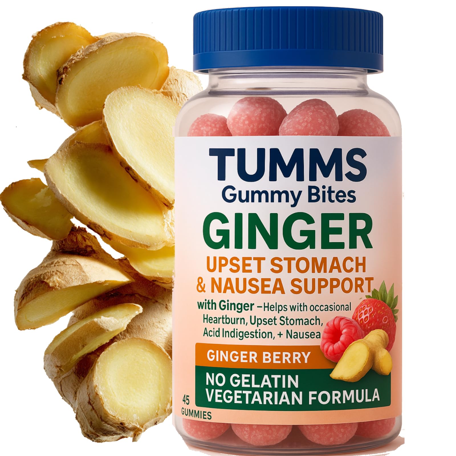 Clean Formula: Vegetarian, Kosher, and Halal certified. Made without artificial dyes or high-fructose corn syrup. Great Taste, Easy to Take: Delicious Ginger Berry flavor chewable tablets—no need for water. Fast-Acting Antacid: Calcium-based formula helps neutralize excess acid for quick relief from heartburn and sour stomach. With Real Ginger: Ginger naturally supports digestion and helps ease queess after eating. Soothes Stomach Nausea: Helps calm upset stomach, bloating, and nausea for fast digestive comfort.