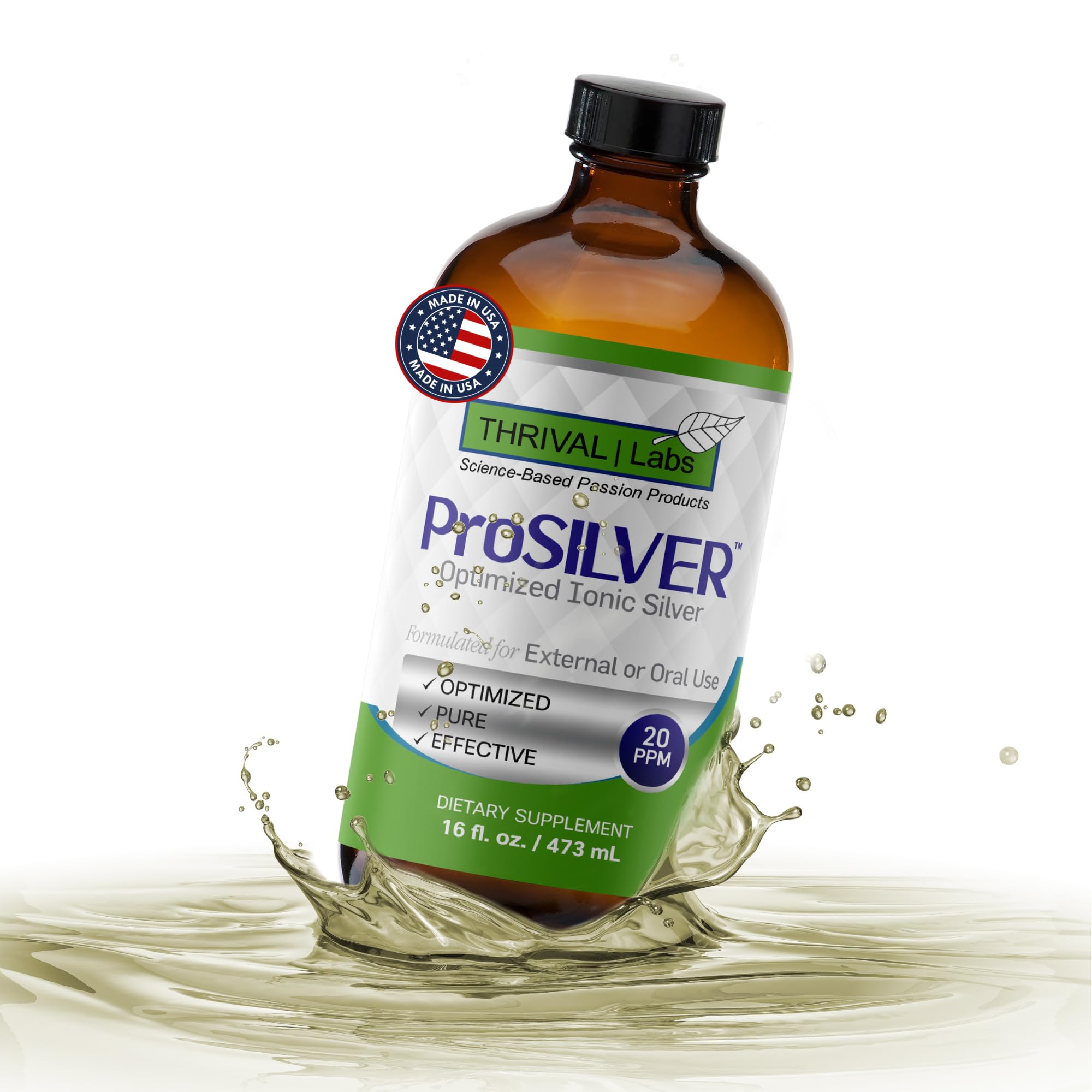 Thrival Labs Ionic Colloidal Silver Liquid 20 PPM Bio Active for Immune Support Glass Bottle 16oz Organic Supplement