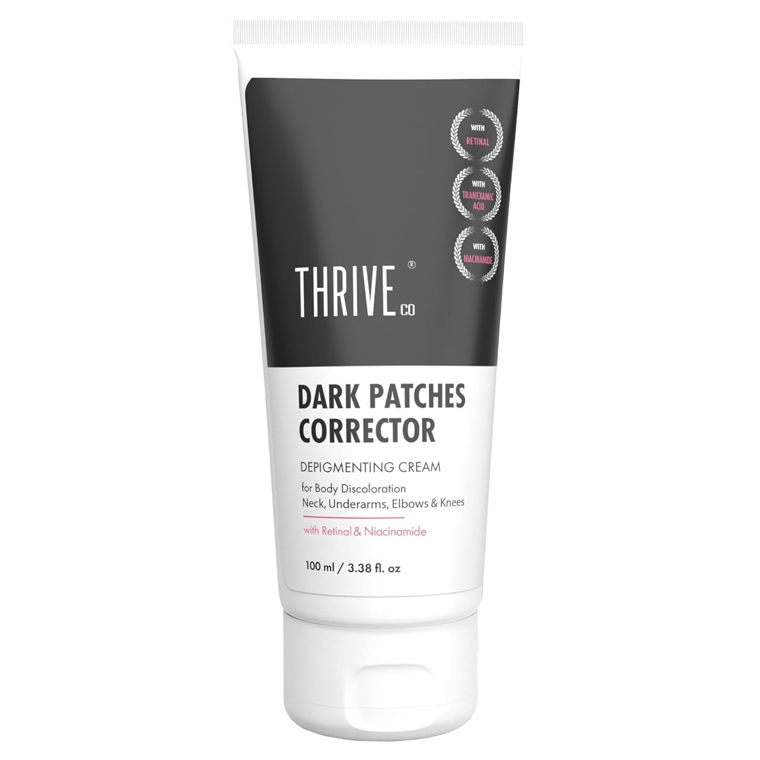 About this item REDUCES DARK PATCHES: NO CLAIMS. ONLY EVIDENCE. ThriveCo’s Dark Patches Corrector is clinically proven to significantly reduce dark patches on the neck, elbows, knees, underarms, inner thighs, knuckles, and other body folds and creases. VISIBLE RESULTS IN ONLY 21 DAYS. Based on registered trials at CTRI (Clinical Trials Registry- India) UNIQUE TRIPLE-ACTION FORMULA: The distinctive formula 1) exfoliates dark skin, 2) speeds up skin renewal, and 3) helps remove UV-induced pigmentation marks from the body (excluding the face). It’s deeply hydrating, promotes even skin tone, and leaves your skin with a healthy & radiant complexion. CUTTING-EDGE INGREDIENTS. ADVANCED RESULTS: It contains Retinal, a superior form of retinol that boosts collagen, renews skin and reduces dark body patches. Tranexamic Acid penetrates deep into the skin & gives a visible even skin tone. Niacinamide decreases hyperpigmentation and makes your skin firm & plumpy. Lactic acid acts as an exfoliant, removes dead skin cells, and helps fade dark body patches, for a clear and smooth look. LIGHT-WEIGHT, NON-STICKY & FAST-ABSORBING: The formula is light, non-sticky, and easily absorbs into your skin. It's super hydrating and leaves your skin feeling soft and supple. HOW TO USE: Cleanse and dry your skin. Apply a generous amount to the affected areas and massage it well. Use it twice a day for effective results. It's suitable for ALL SKIN TYPES. THE THRIVECO ADVANTAGE: India's leading cosmeceutical brand. Backed by years of deep R&D, ThriveCo products are Dermatologically-Tested for safety, and Clinically-Proven for efficacy. ThriveCo stands for cruelty-free, toxin-free, clean, and ethical beauty practices while delivering pioneering results through its innovative formulations.THE THRIVECO ADVANTAGE: India's leading cosmeceutical brand. Backed by years of deep R&D, ThriveCo products are Dermatologically-Tested for safety, and Clinically-Proven for efficacy. ThriveCo stands for cruelty-free, toxin-free, clean, and ethical beauty practices while delivering pioneering results through its innovative formulations. HOW TO USE: Cleanse and dry your skin. Apply a generous amount to the affected areas and massage it well. Use it twice a day for effective results. It's suitable for ALL SKIN TYPES. LIGHT-WEIGHT, NON-STICKY & FAST-ABSORBING: The formula is light, non-sticky, and easily absorbs into your skin. It's super hydrating and leaves your skin feeling soft and supple. CUTTING-EDGE INGREDIENTS. ADVANCED RESULTS: It contains Retinal, a superior form of retinol that boosts collagen, renews skin and reduces dark body patches. Tranexamic Acid penetrates deep into the skin & gives a visible even skin tone. Niacinamide decreases hyperpigmentation and makes your skin firm & plumpy. Lactic acid acts as an exfoliant, removes dead skin cells, and helps fade dark body patches, for a clear and smooth look. UNIQUE TRIPLE-ACTION FORMULA: The distinctive formula 1) exfoliates dark skin, 2) speeds up skin renewal, and 3) helps remove UV-induced pigmentation marks from the body (excluding the face). It’s deeply hydrating, promotes even skin tone, and leaves your skin with a healthy & radiant complexion. REDUCES DARK PATCHES: NO CLAIMS. ONLY EVIDENCE. ThriveCo’s Dark Patches Corrector is clinically proven to significantly reduce dark patches on the neck, elbows, knees, underarms, inner thighs, knuckles, and other body folds and creases. VISIBLE RESULTS IN ONLY 21 DAYS. Based on registered trials at CTRI (Clinical Trials Registry- India).