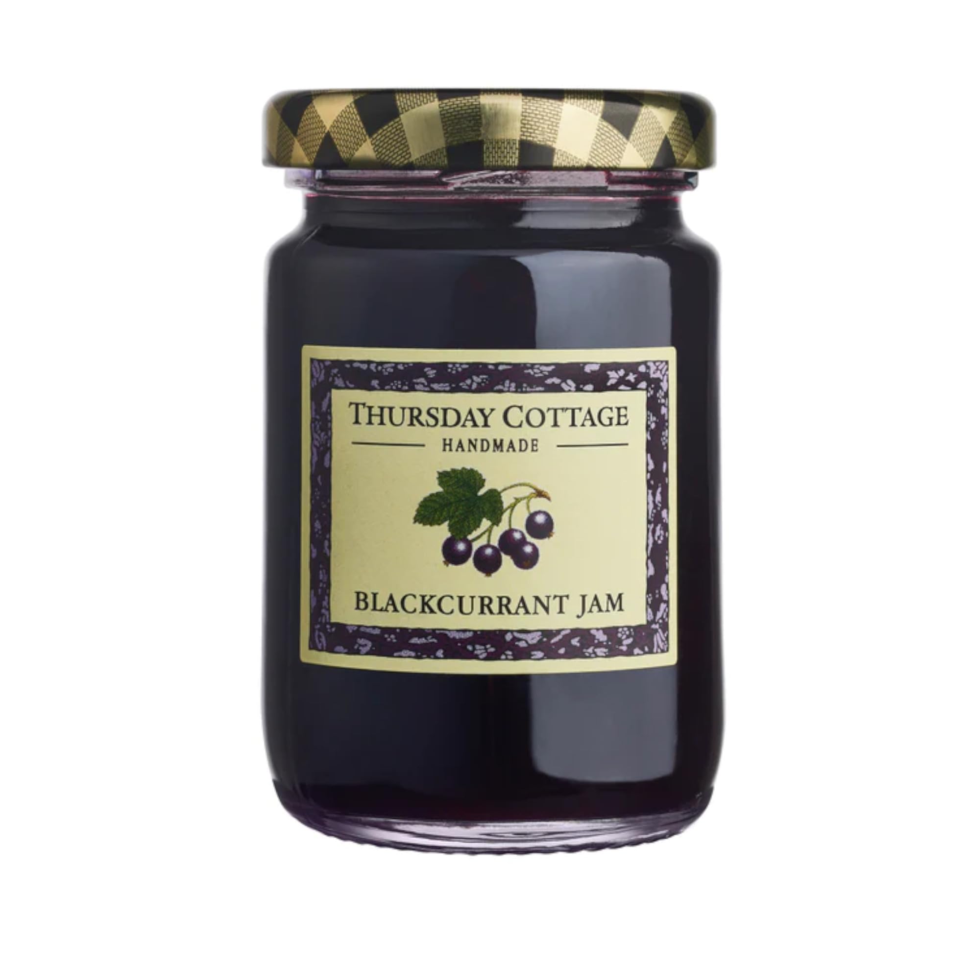 Thursday Cottage Blackcurrant Jam 2 x 340g. Blackcurrants have a sweet and tangy flavor ideal for jams and jellies. This jam is delicious spread on toast, crumpets, or as a filling for muffins. Our delicious jams are made from specially selected whole fruit and cooked in open pans. Each jar is carefully hand-poured in small batches by our cooks. This hand-pouring method ensures more whole fruit in each jar. Thursday Cottage has been producing high-quality, handcrafted jams and marmalades since 1963. INGREDIENTS Sugar, blackcurrants, gelling agent: citrus pectin