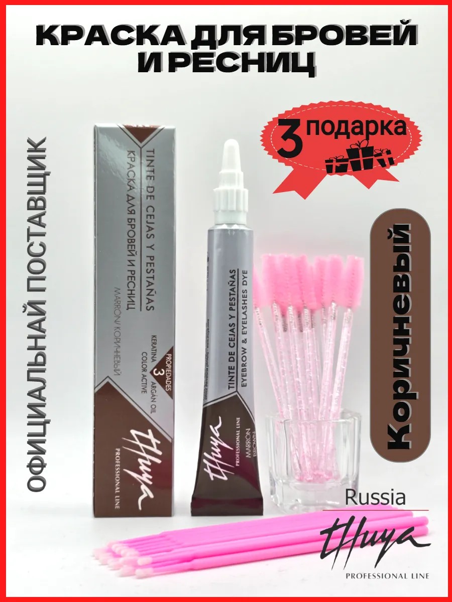 Краска для бровей и ресниц Thuya(туя) Professional Line, коричневый 14 мл + подарок