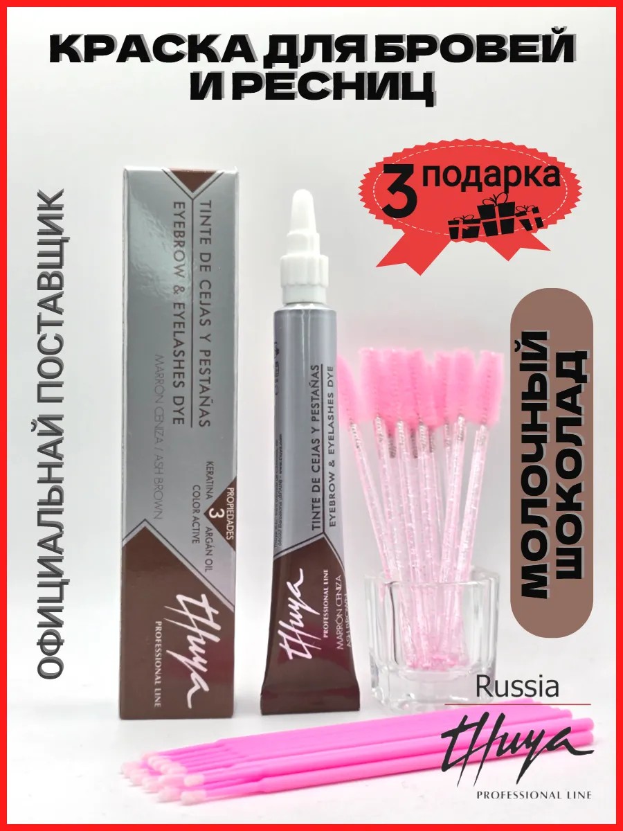Краска для бровей и ресниц Thuya(туя) Professional Line — это стойкое окрашивание и комплексный уход за волосками. В набор входит подарок: стаканчик для смешивания и 3 кисточки для удобного нанесения!