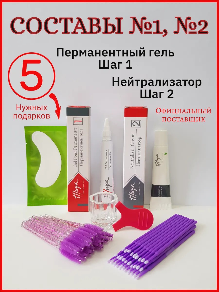 | Комплектация | Перманентный гель для бровей и ресниц Thuya 1 шаг 15 мл 1шт.; Нейтрализатор кремовый шаг 2 Thuya 15 мл 1 шт.; Стеклянный стаканчик для разведения краски и хны; Нейлоновые щёточки для ресниц и бровей 10 шт.; Микробраши для ресниц и бровей 10 шт.; Аппликатор для ламинирования ресниц 1 шт.; Одноразовые патчи под глаза 1шт. |