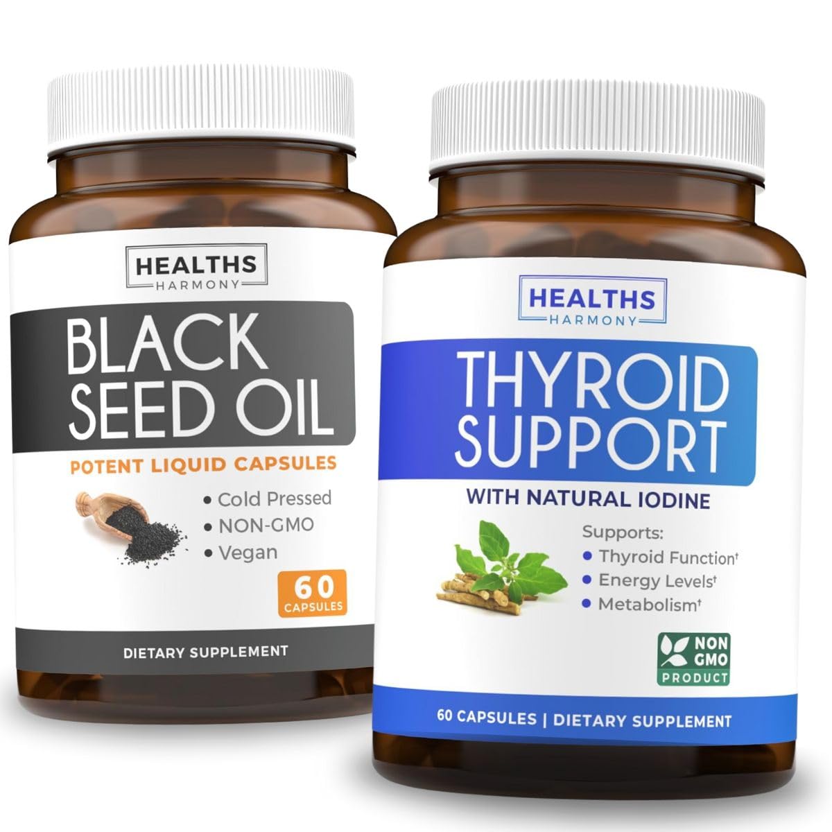 Thyroid Support & Black Seed Oil (1-Month Supply) Black Seed Thyroid Boost - Thyroid Support (60 Capsules) Health Supplement & Black Seed Oil (60 Capsules) Cold-Pressed Nigella Sativa - Non-GMO