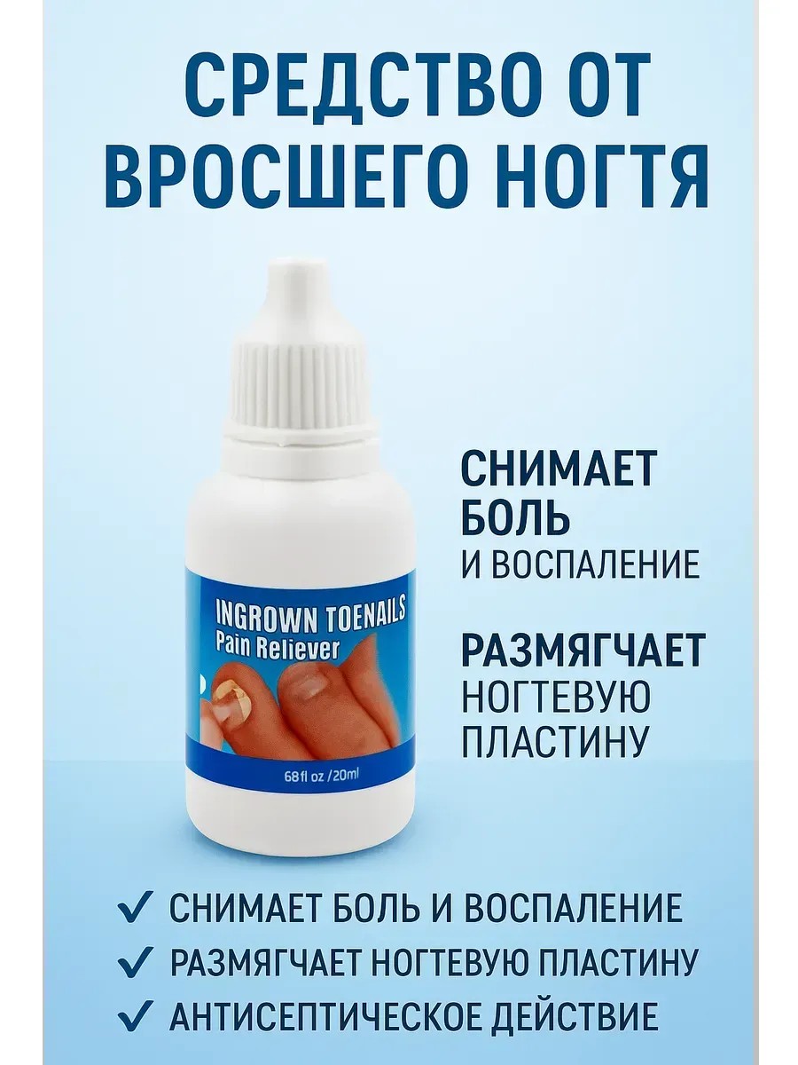 Эффективное средство от вросшего ногтя предназначено для быстрого снятия боли, воспаления и дискомфорта, возникающих при врастании ногтя в мягкие ткани. Средство оказывает антисептическое и противовоспалительное действие, помогает избежать нагноения и развития инфекции.