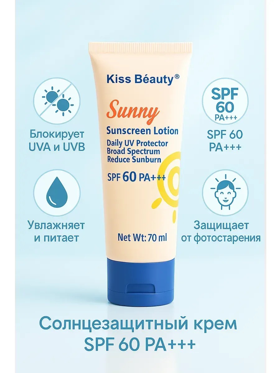 Надёжный солнцезащитный крем-лосьон для лица и тела, обеспечивающий высокую степень защиты от UVA и UVB лучей. Благодаря формуле с SPF 60 PA+++ он помогает предотвратить солнечные ожоги, фотостарение и появление пигментных пятен, сохраняя кожу гладкой и увлажнённой даже в самые жаркие дни. Этот увлажняющий солнцезащитный крем подходит для всех типов кожи, включая чувствительную, и дарит ощущение мягкости без липкости и белых следов.