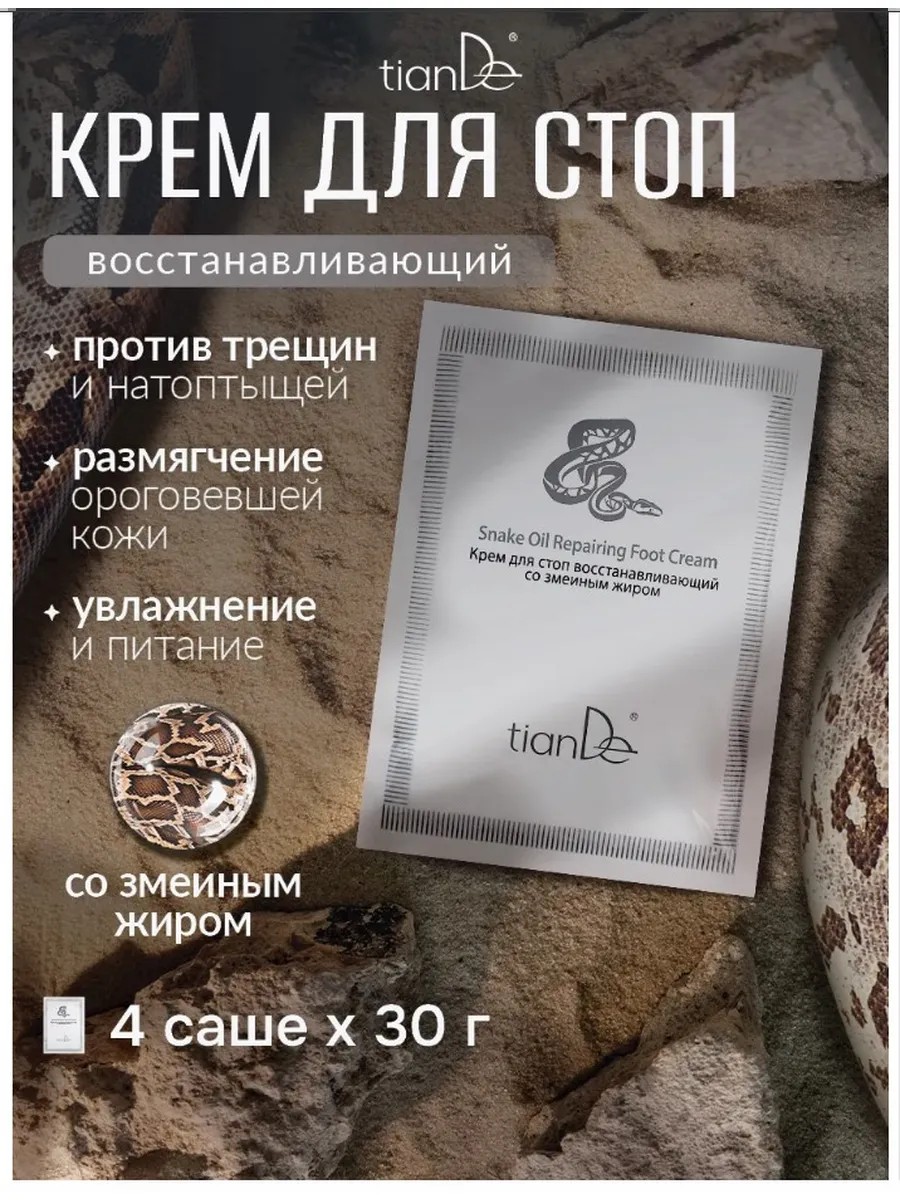 tianDe Крем для ног стоп пяток уход от трещин со змеиным жиром 4 шт