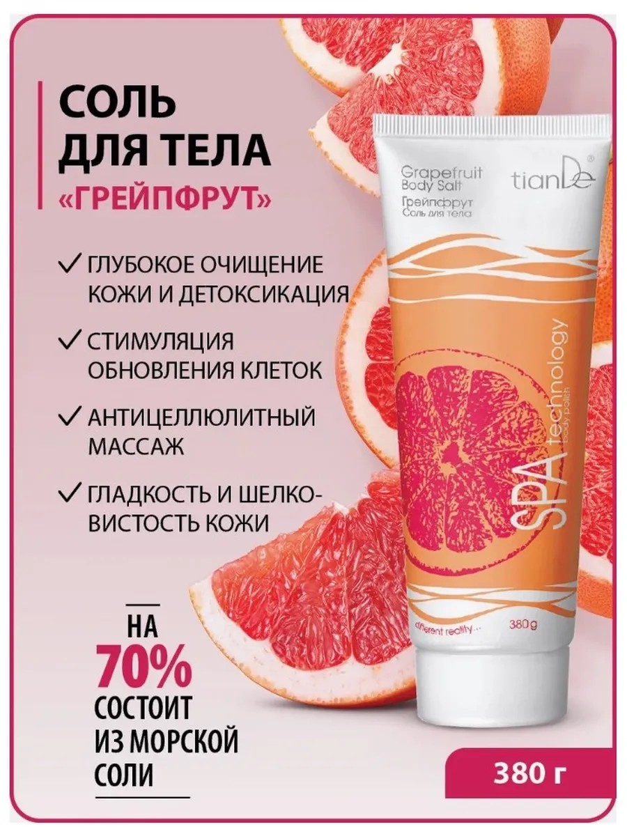 tianDe Солевой антицеллюлитный скраб для тела "Грейпфрут", 380 г