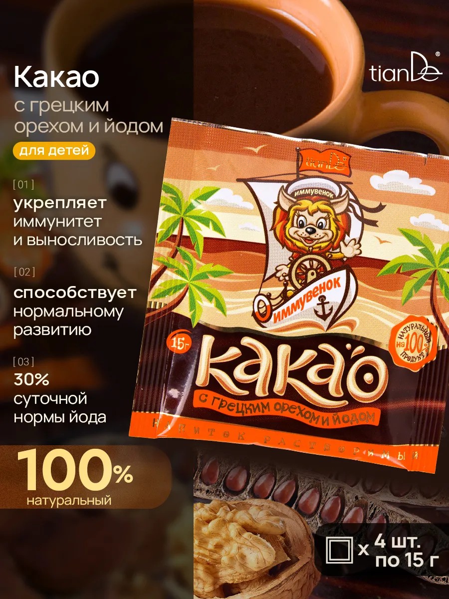 Напиток растворимый "Какао с грецким орехом и йодом", 4 шт