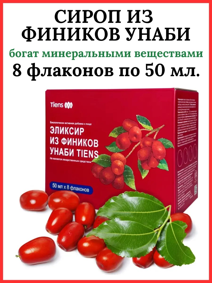Сырье для производства - отборные, экологически чистые финики унаби. Применение современных технологий обеспечивает высокую чистоту продукта и содержание циклического аденозинмонофосфата ?45 мг/кг. Выпускается в форме сиропа высокой концентрации, легко усваивается организмом. По содержанию циклического нуклеотида плоды китайского финика занимают первое место среди других видов лекарственного сырья. Кроме того, в нем содержатся сахариды (60-70%) и витамин С (в 60-80 раз больше, чем в яблоках). Предназначен для людей, страдающих анемией, бессонницей, с пониженным иммунитетом. Способ употребления: В зависимости от личных предпочтений разбавить водой комнатной температуры, размешать. Рекомендуется употребить в течение 2 дней с момента вскрытия упаковки. Возможно образование естественного осадка, перед употреблением взболтать. Противопоказания: индивидуальная непереносимость компонентов продукта, сахарный диабет. Детям принимать данный продукт не рекомендуется.