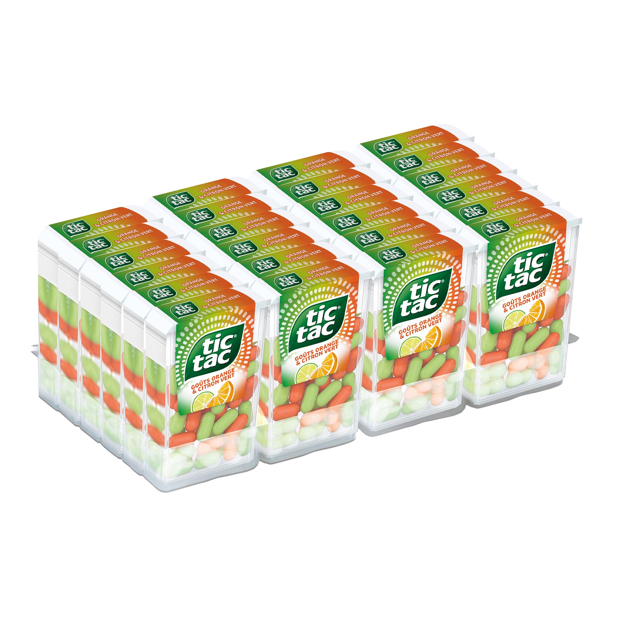 TicTac Duo Goûts Orange et Citron Vert - Bonbons sucrés aux fruits - Format de Poche - 24 boites x 18g