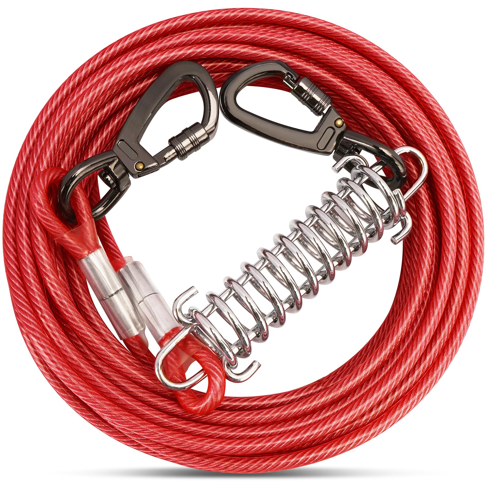 Brand: OH-JEWPHX ?High-quality materials? : diameter 5 mm is , The cable tie for pets is made of solid stainless steel wire and is covered with PCV to avoid friction and injuries to pets.?Multi size and color?: diameter 5 mm is , length: 3/6/9/15m, color: silver/blue/green/red/orange/pink/purple/Seeblau/rose red , give more space to free inMoving backyard outside while he keeps him safely.?Suitable for use?: The strong and durable cable for binding for dogs is very suitable for camping, park, farm, garden and other outdoor activities.?360-degree rotation?: Our dog traction is equipped with rotating buckle that is very strong, and when the dog is running, the dog traction will not knot.?New and improved stainless steel buckle?: The buttons on both ends are made of stainless steel.They are very durable and do not break.They are very suitable for large and medium -sized dogs. Marke: OH-JEWPHX?Hochwertige Materialien?:Durchmesser 5 mm ist ,Der Kabelbinder für Haustiere besteht aus massivem Edelstahldraht und ist mit PCV bedeckt, um Reibung und Verletzungen von Haustieren zu vermeiden. ?Multi Größe und Farbe?: Durchmesser 5 mm ist,Länge: 3/6/9/15m, Farbe: silber/blau/grün/rot/orange/pink/lila/Seeblau/Rosenrot,geben mehr Platz, um sich frei im Hinterhof draußen zu bewegen, während er ihn sicher hält. ?Geeignet für den Gebrauch?: Das starke und langlebige Kabel zum Binden für Hunde eignet sich sehr gut für Camping, Park, Hof, Garten und andere Outdoor-Aktivitäten. ?360-Grad-Rotation?: Unsere Hundetraktion ist mit drehschnalle ausgestattet, die sehr stark ist, und wenn der Hund läuft, wird die Hundetraktion nicht knoten. ?Neue und verbesserte Edelstahlschnalle?: Die Knöpfe an beiden Enden sind aus Edelstahl gefertigt. Sie sind sehr langlebig und brechen nicht. Sie eignen sich sehr gut für große und mittelgroße Hunde.Tie Out Leinen für Hunde,Leinen mit Stoßdämpfender Feder,3-15m, Hofleine Leinen für Hunde,Hundeleine für den Hof(Rot,15M 15m Rot