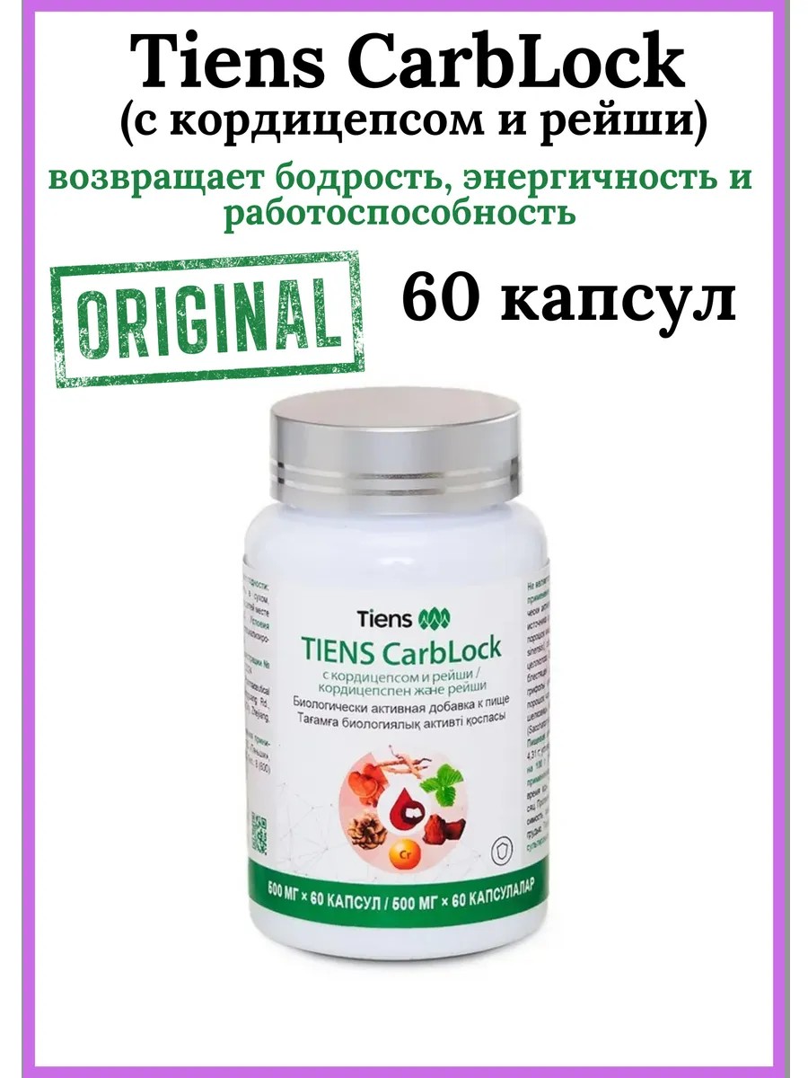 Based on natural ingredients from traditional Chinese medicine, Tiens CarbLock helps the body regulate blood glucose levels and the process of its use by tissues, because it optimizes several stages of carbohydrate metabolism at once: carbohydrate absorption, insulin secretion and tissue sensitivity to it, and the functioning of Krebs cycle enzymes.