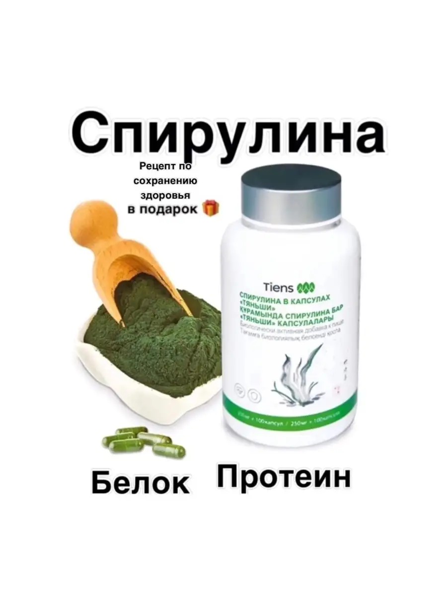 Helps combat excess weight, increases performance, improves memory, promotes detoxification, and supports immunity. Tiens Spirulina capsules are recommended for people with reduced performance and high physical and mental stress. The active ingredient is spirulina, rich in protein, beta-carotene, amino acids, trace elements, and B vitamins, which effectively replenishes their deficiencies in the body. It serves as a preventative measure for cardiovascular diseases. Its natural composition ensures safe use. It is not a medicine. Spirulina powder for detoxification is a source of protein, replaces protein in its pure form for muscle growth, vitamins from vegetables and fruits, and nourishing spirulina for weight loss instead of food. Spirulina capsules from Tiens Tiens Spirulina Algae