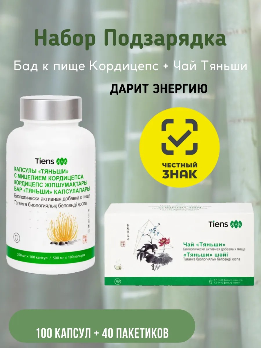 | Комплектация | чай 40 пакетиков, кордицепс 100 капсул |