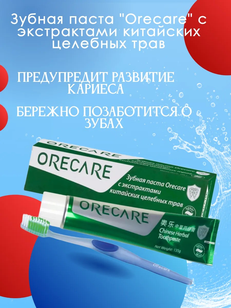 Зубная паста Orecare с экстрактами китайских целебных трав рекомендована людям с чувствительной эмалью зубов. Прекрасно подойдет для семейного использования и в качестве профилактического средства.