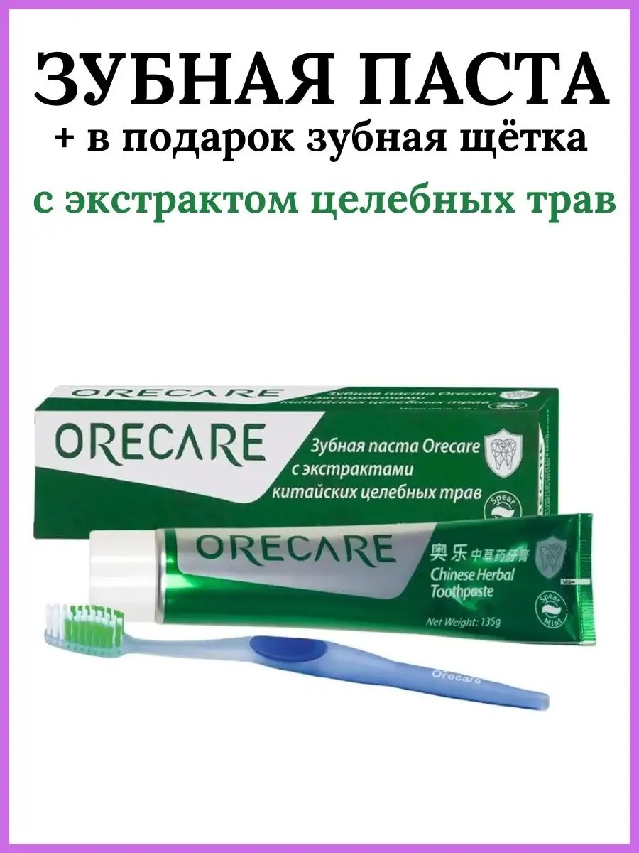 **Зубная паста Orecare с экстрактами китайских целебных трав** рекомендована людям с чувствительной эмалью зубов. Прекрасно подойдет для семейного использования и в качестве профилактического средства.Предупредит развитие кариесаПредупредит развитие заболеваний полости ртаБережно позаботится о зубах и освежит дыханиеЭффективно препятствует образованию зубного налетаНе вызовет ощущение сухости во рту и подарит белоснежную улыбкуПриродная формула активных компонентов из натуральных экстрактов трав и редких растений. Экстракты сарканды гладкой, жимолости, дикой хризантемы в составе зубной пасты обладают мощным противовоспалительным эффектом и обеспечивают устойчивость свежего дыхания. Подходит для регулярного использования взрослым и детям вне зависимости от возраста. Обеспечит гипоаллергенность и безопасность применения благодаря натуральному составу.Не сушит кожу в уголках рта.