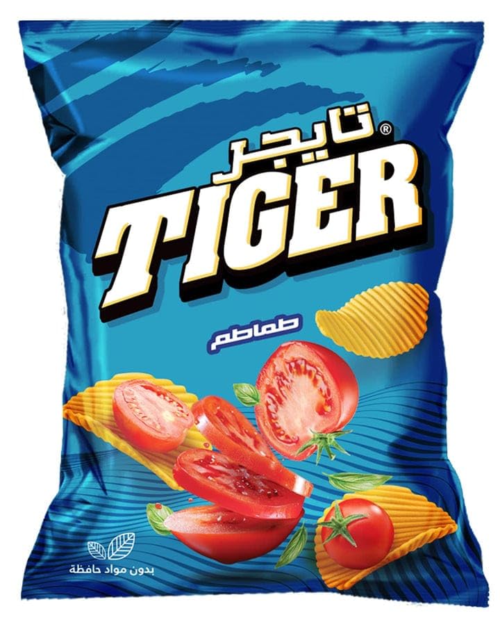 Tiger Tomato Flavored Chips are the perfect snack for anyone looking for a tasty and crunchy treat. These wavy chips offer a unique texture that perfectly holds the tomato seasoning, guaranteeing a burst of flavor with every bite. Made from quality potatoes, these Tiger chips are prepared to deliver an irresistible crunch that the whole family will love. The tomato flavor brings a delicious Mediterranean touch, perfectly balancing the natural taste of the potato with tangy and slightly sweet notes. This 90-gram pack is ideal for sharing at a party with friends, accompanying your lunch, or simply satisfying a small craving.