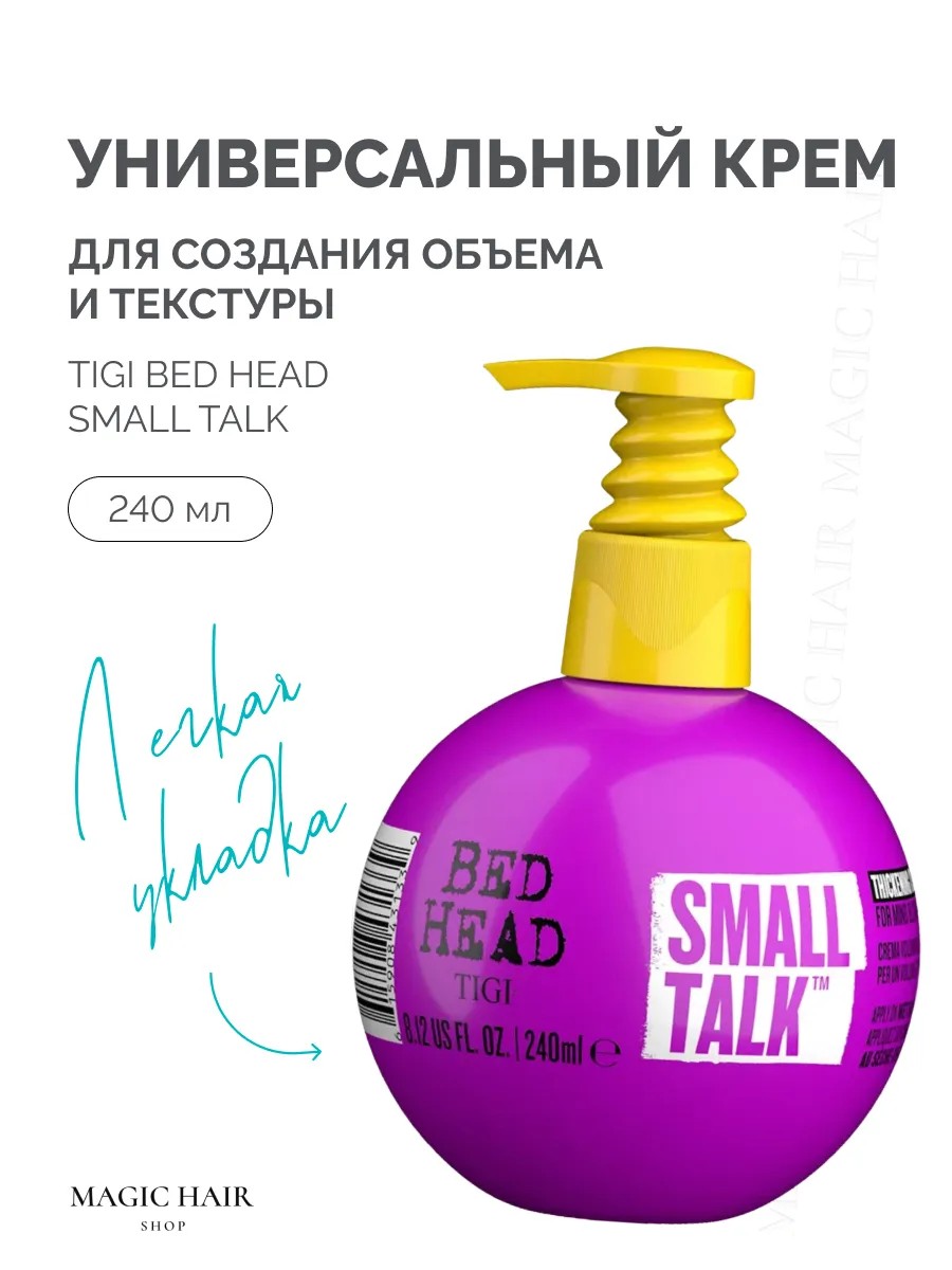 Крем для объема волос SMALL TALK универсальный крем. Настоящее средство для ухода за волосами. Он эффективно придает объем, убирает пушистость и моделирует локоны. Крем обладает термозащитой, защищая волосы от воздействия фена и термических инструментов. Благодаря питательному составу, он увлажняет и укрепляет структуру волос, придавая им потрясающий вид.