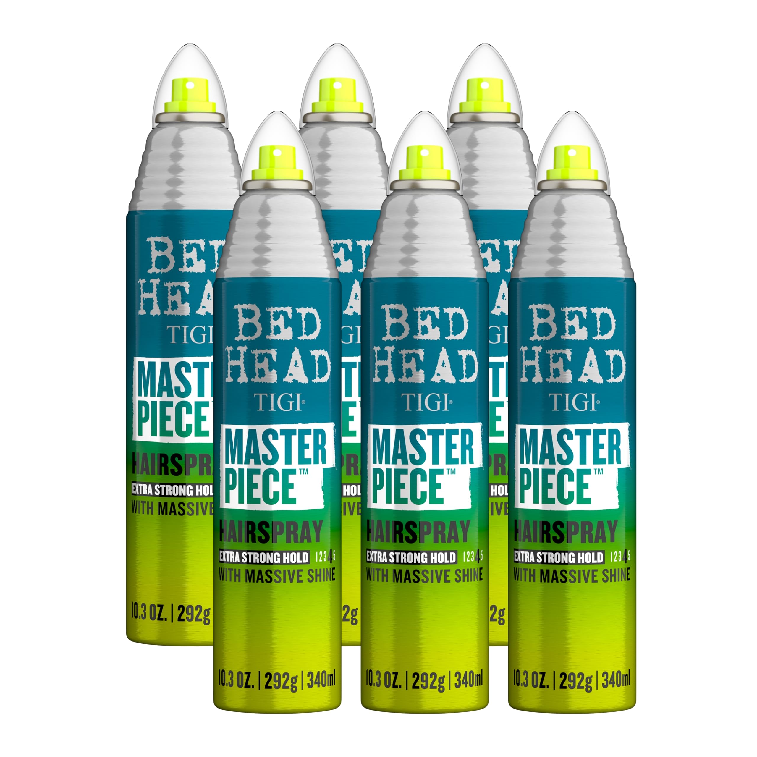 TIGI Bed Head Masterpiece Shiny Hairspray with Strong Hold - For All Hair Types - Extra Strong Hold & Shiny Finish - Use on Dry Hair - Premium Hair Care Products for Women & Men - 10.3 oz (6 Pack) Tropical 15.45 Ounce (Pack of 4)