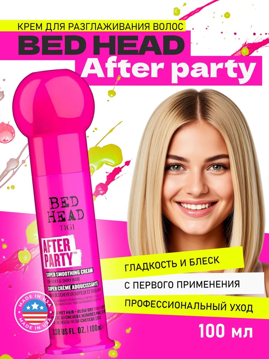 Разглаживающий крем TIGI BED HEAD After party для придания блеска и свежести волосам применяется для укладки волос и рестайлинга прически без мытья волос. Профессиональная косметика, крем для волос несмываемый - крем стайлинг для волос разглаживает, придает мерцание, делает волосы шелковистыми. Несмываемый крем подходит для любых волос, особенно для вьющихся и непослушных. Для волос Tigi Bed head подходит для любой длины. ТИГИ крем для укладки волос защищает от влажности и помогает бороться с эффектом "пушистых волос", несмываемый уход для волос. Применение: распредели равномерно на влажные волосы, прочешите, затем высушите. Для завершения образа или рестайлинга нанеси небольшое количество Tigi для укладки на сухие волосы, чтобы освежить укладку и устранить нежелательные запахи. Разглаживающий крем для волос можно применять в качестве финиша на сухие волосы: он снимет статику, уберет ненужные завитки и идеально подчеркнет локоны. ТИДЖИ крем обеспечивает термозащиту волос.