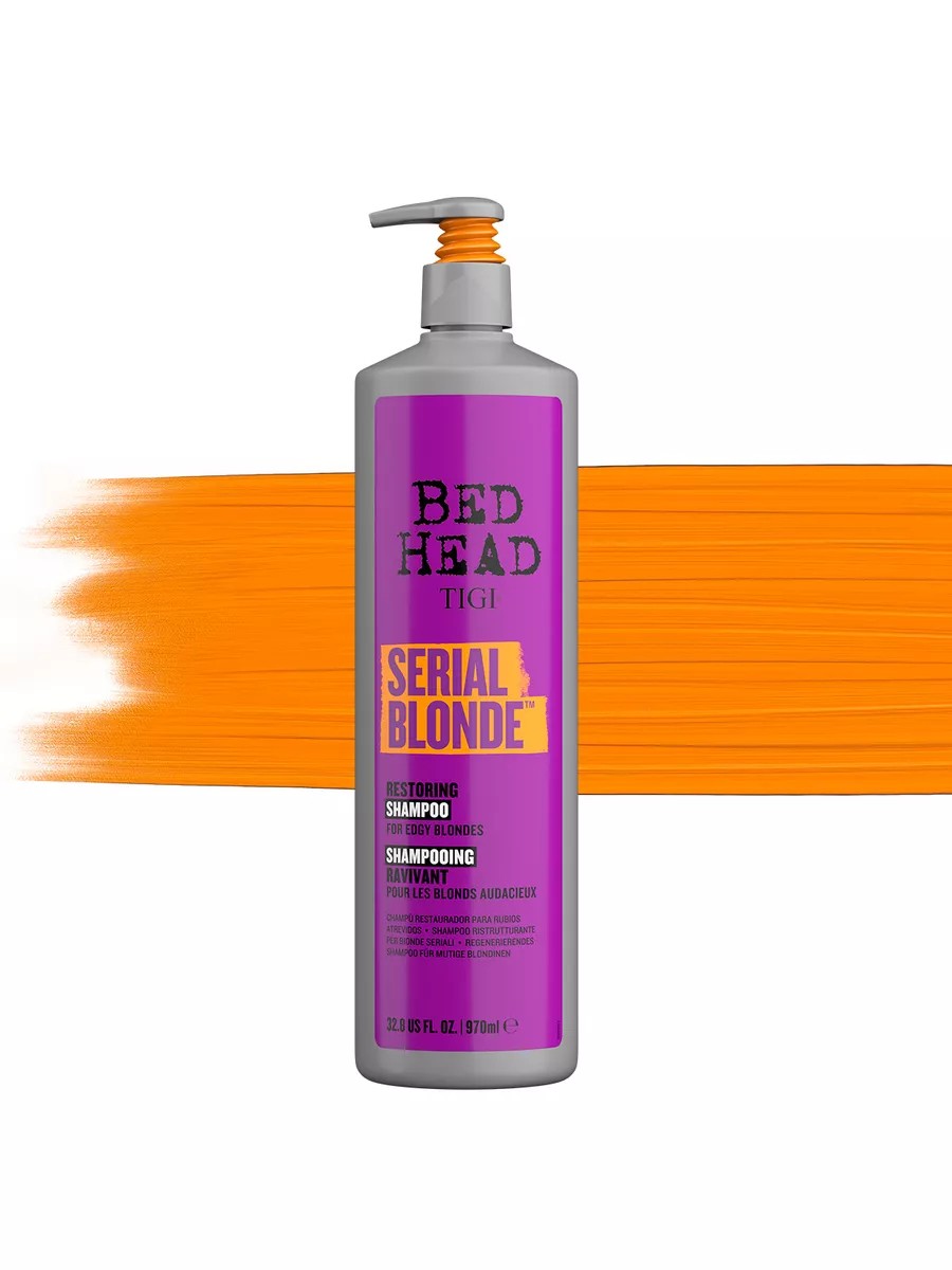 SERIAL BLONDE BED HEAD Shampoo repairs brittle hair, prevents future damage, and maintains the healthy appearance of blonde hair. Gently cleanses without drying out hair.