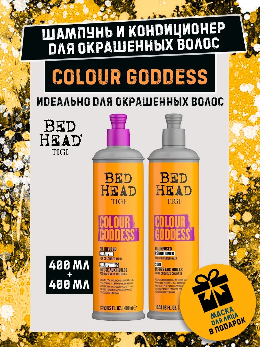 Профессиональный шампунь и кондиционер TIGI BED HEAD Colour Goddess созданы специально для окрашенных, ослабленных и сухих волос с системой защиты цвета и повышения яркости цвета. Идеально для окрашенных волос особенно для брюнеток каштановых и медных оттенков. Набор Богиня Цвета от Тиджи это идеальное решение для ухода за окрашенными волосами стремящимися сохранить яркость и насыщенность цвета. Шампунь бережно очищает волосы удаляя загрязнения и остатки стайлинговых средств не нарушая при этом защитную пленку окрашенных волос. Питательные компоненты помогают предотвратить вымывание цвета и делают волосы более шелковистыми и блестящими. Освежает и бережно очищает волосы, усиливая яркость и насыщенность цвета. Содержит масло сладкого миндаля, провитамин В5, витамин Е. Уменьшает ломкость во время расчесывания, разглаживает кутикулу и придает волосам здоровый блеск. Содержит в составе кератин и масло кокоса, которые помогают сохранить мягкость и здоровье волос. Аромат ириски вскружит тебе голову! Кондиционер ухаживает за волосами, обеспечивая им интенсивное увлажнение и защиту. Его легкая текстура проникает в структуру волос, улучшая их эластичность и устраняя пушистость. Специальные ингредиенты помогают продлить жизнь цвета и придают волосам здоровый блеск. Питательная формула содержащая масло ши, витамин Е и кератин, глубоко проникает в структуру волос, восстанавливая их. Масло сладкого миндаля обеспечивает надежную защиту цвета окрашенных волос. Увлажняет и кондиционирует волосы, добавляя им невероятную мягкость. Вместе эти продукты создают идеальную пару для ухода за окрашенными волосами, наполняя их силой, жизнью и блеском. Подходит для ежедневного использования и дарит волосам не только насыщенный цвет, но и комфортное ощущение ухоженности. Отличный подарок на день рождения, 8 Марта, Новый год и Рождество, день Святого Валентина, день матери. Подарите вашему близкому человеку возможность насладиться роскошным уходом за волосами с набором Colour Goddess от TIGI!