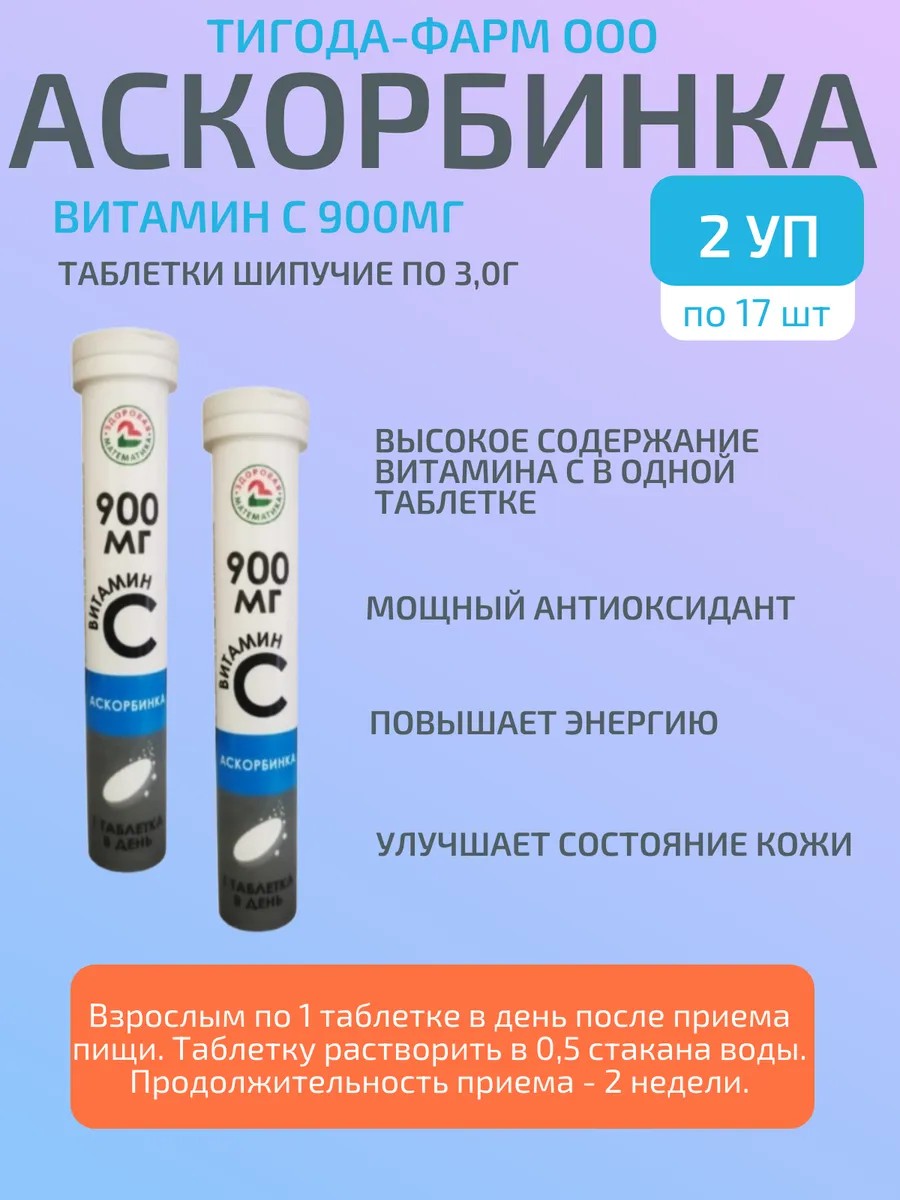 Аскорбинка (Витамин С) 900 мг, 17 штук - это биологически активная добавка (БАД) к пище - шипучие таблетки, которые содержат высокую концентрацию аскорбиновой кислоты (витамина С).
