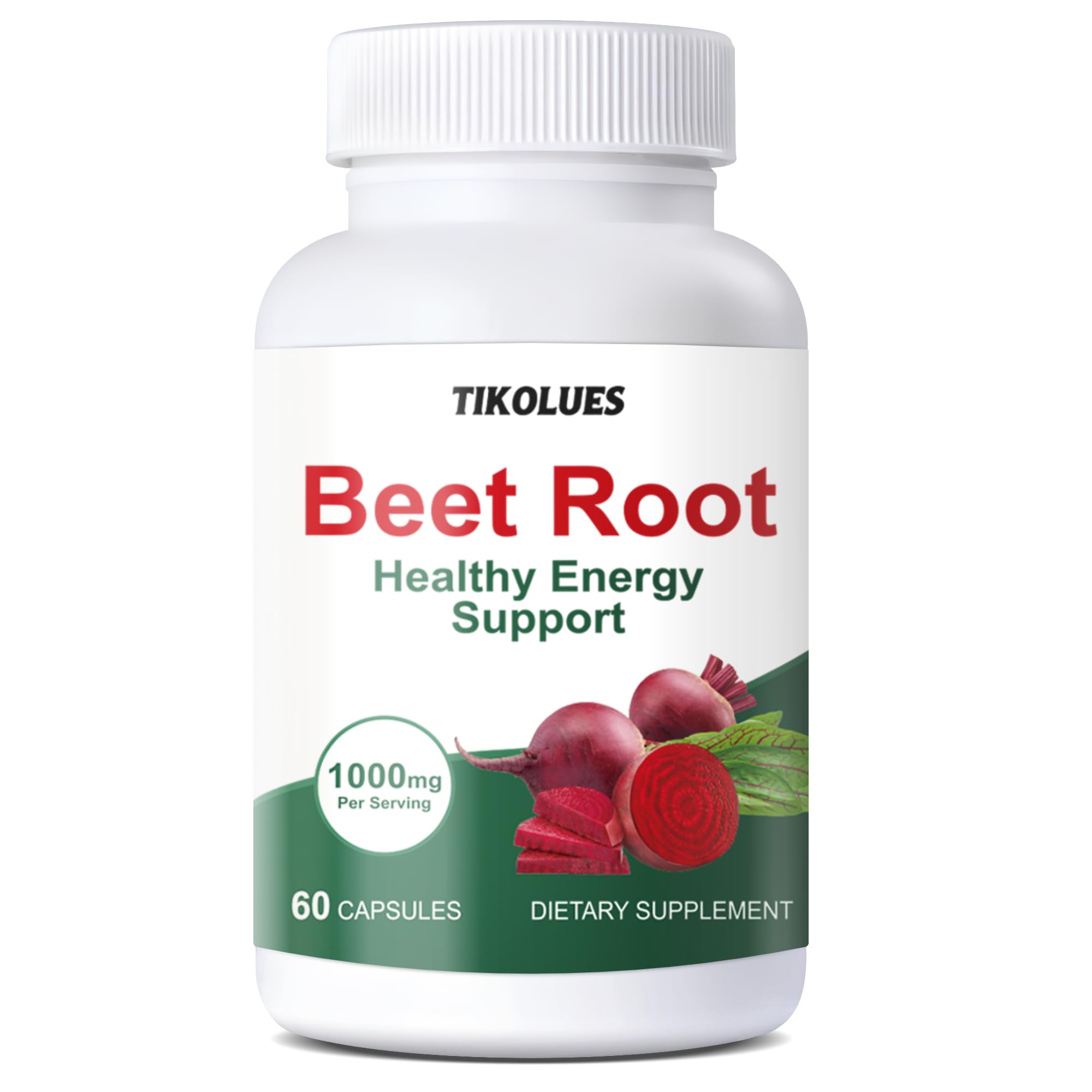 TIKOLUES Beet Root Supplement 1000mg Organic Beetroot Supports Energy & Circulation Non-GMO - 60 Capsules