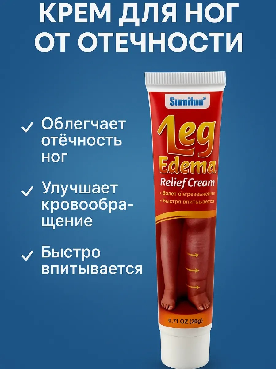 Крем Sumifun Leg Edema Relief — это проверенное средство для снятия отёков, улучшения кровообращения и лимфооттока. Идеально подходит для людей, испытывающих тяжесть в ногах, варикозное расширение вен, усталость после длительного стояния или хождения.