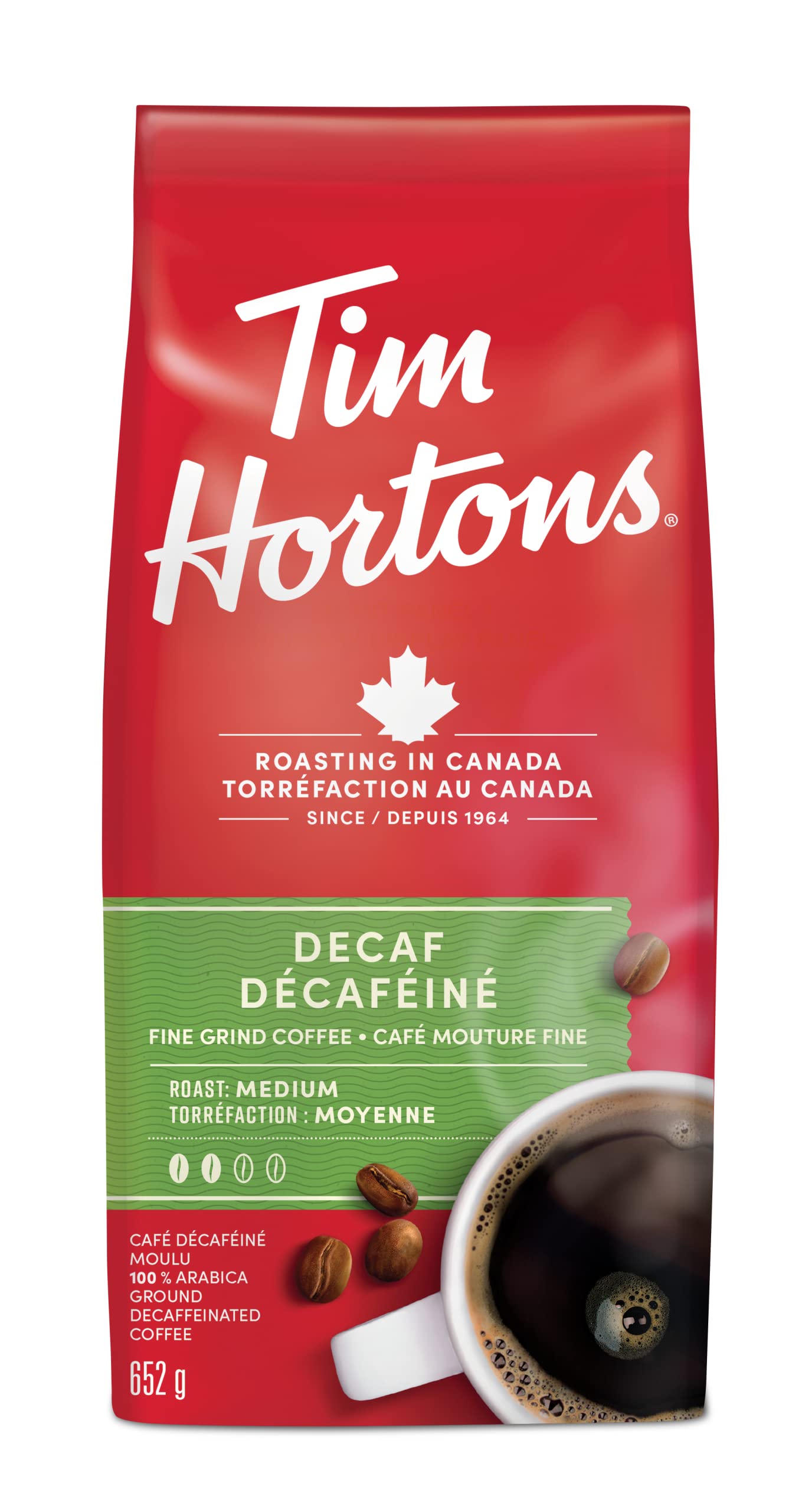 Tim Hortons Decaf Fine Grind Coffee Medium Roast Made with 100% Arabica Beans 652g Bag Coffee Decaf 652 g (Pack of 1)