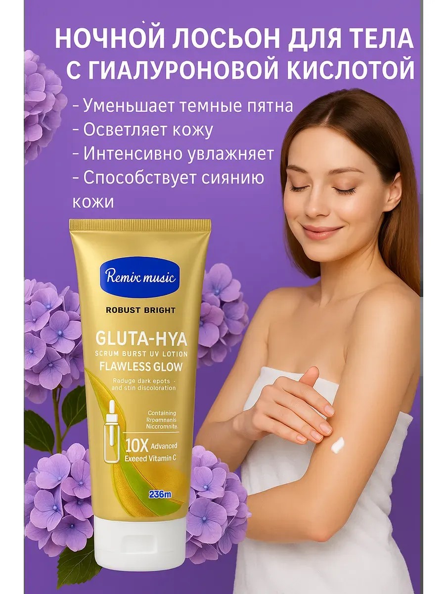 This serum-lotion with glutathione and hyaluronic acid is an innovative skincare product designed to achieve radiant, even-toned, and smooth skin. It effectively combats dark spots, discoloration, and signs of fatigue, evening out skin tone and restoring a healthy glow.