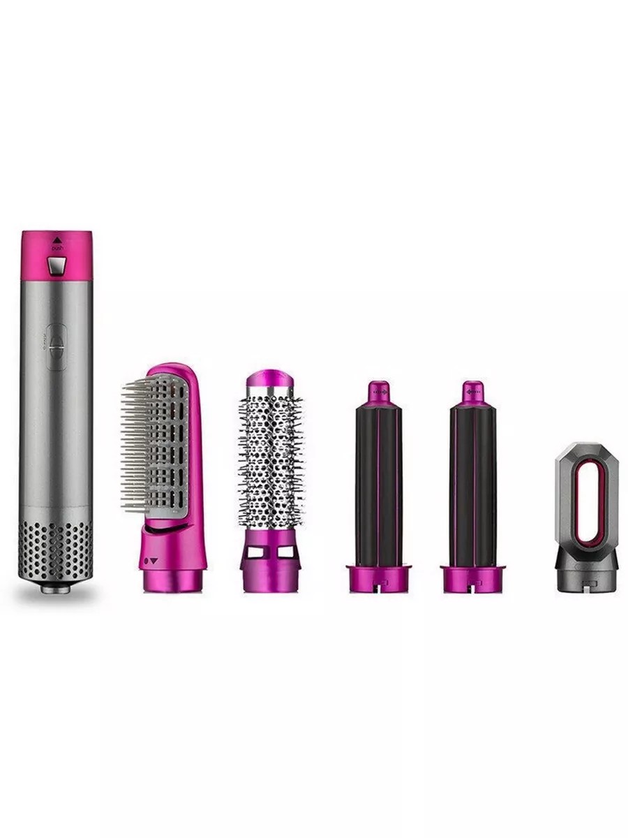 This multi-styler hair dryer is perfect for drying and professionally styling your hair. This 5-in-1 styler can be used as a regular hair dryer with ionization, which coats your hair with ions that protect it from harmful external influences. The hair dryer dries hair perfectly without damaging it with a comb attachment. Our curling iron is designed for the beauty and health of your locks. It comes with 5 attachments: a straightening iron, curling tongs, a comb brush, a brush, and a blow dryer attachment. It can replace a hair dryer, curling iron, styling tongs, a straightening brush, electric curlers, and a volumizing brush. The manufacturer has ensured that all necessary elements are included. The styler has cylindrical attachments for creating curls or waves, as well as brushes for smoothing and adding volume. Choose the right attachments for your hair type and desired style from one of our sets. This hair styler uses the aerodynamic phenomenon known as the Coanda effect. The curling iron creates vortexes that attract and curl hair around the attachment. Styling is done with air, without extreme temperatures. This triple curling iron perfectly straightens long and short hair, curls curls, and creates the perfect ringlets, creating the perfect hairstyle with different attachments. Three temperature settings allow you to choose the most suitable option, with a 10-second heat-up time. A wide range of available functions is available. Operation is extremely simple; you'll be able to navigate through the functions the first time you use it. This hair styler is highly safe, won't damage your hair, and helps you provide the perfect care even at home. The low maximum heating temperature doesn't exceed 150 degrees Celsius. This hair dryer brush features an innovative airflow principle, helping to reduce damage to the hair structure during styling. There's no need to use clips to secure the strand to the attachment. The 1-meter-long cord rotates 360 degrees, allowing you to position yourself comfortably, regardless of proximity to a power outlet. Weighing just 0.59 kg, it won't tire your hand, even if styling takes time. With the right attachments, it's easy to style thick, coarse, color-treated hair, as well as fine, flat strands. Its high power of 1300 watts ensures adequate heating or cooling without requiring long waits for results. This 5-in-1 multistyler is quiet, lightweight, and compact, making it easy to take on any trip. You can purchase an excellent styling kit complete with a stylish case in our store. Professional hair care at home, perfect for hairdressers. Ideal as a professional hairdressing tool, this curling iron will ensure beautiful and healthy hair for both women and men. An ideal gift for a friend, wife, grandmother, mother, sister, or daughter, and would also make a great gift for a coworker.