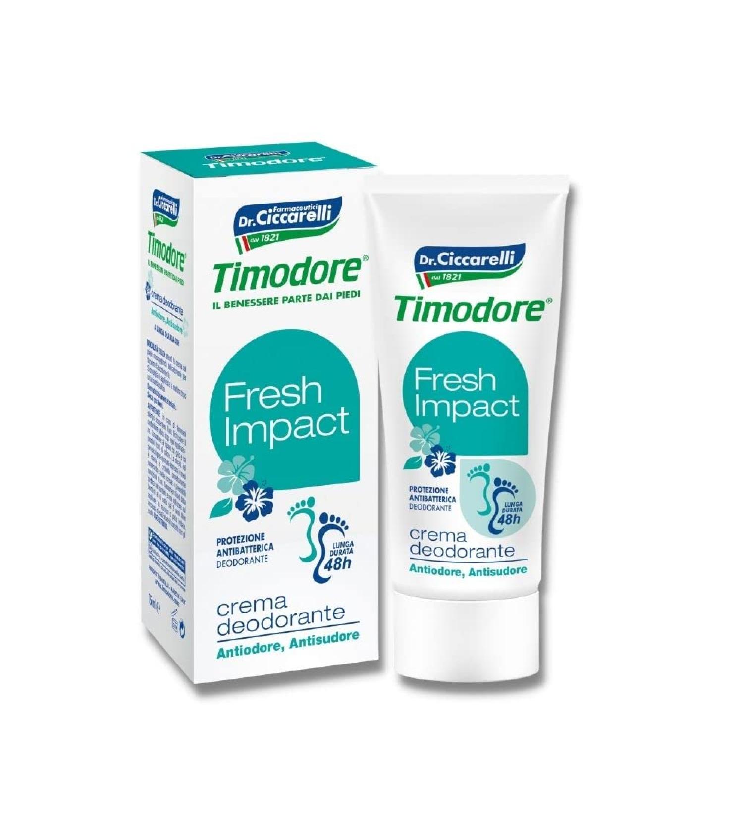 Timodeur 48h deodorant cream acts effectively in cases of excessive foot sweating, plantar pimidosis and bad foot odor, situations particularly common in teenagers, athletes, but also for those who wear closed shoes all day. The deodorant action will last up to 48 hours, both thanks to the formula rich in active ingredients capable of fighting foot perspiration and the presence of Timo extracts with antibacterial properties and natural dermopurifying active ingredients such as Lavender, Rosemary and Margosa. How to use: spread the cream on the foot, massaging gently to promote absorption. It is recommended to apply it in the morning after a thorough cleansing. Dermatologically tested, par-free.Antibacterial protection. Dermatologically tested and paraben-free. Effective in cases of excessive foot perspiration, plantar bromidosis, and foot odor, particularly common among teenagers, athletes, and those who wear closed shoes all day. Contains natural dermopurifying active ingredients such as lavender, rosemary, and neem. Prolonged deodorant action of up to 48 hours, either thanks to the formulation rich in active ingredients capable of controlling foot perspiration or due to the presence of thyme extracts with antibacterial properties. Timodeur crème déodorant 48h agit efficacement dans les cas excessifs sudation du pied, pimidose plantaire et mauvaise odeur du pied, situations particulièrement fréquentes dans les adolescents, les sportifs, mais aussi pour ceux qui utilisent des chaussures fermées toute la journée. L'action déodorante se prolongera jusqu'à 48 heures, aussi bien grâce à la formule riche en actifs capable de lutter contre la transpiration du pied que par la présence d'extraits de Timo aux propriétés antibactériennes et d'actifs naturels dermopurifiants comme la Lavande, le romarin et la Margose. Mode d'utilisation : étendez la crème sur le pied en massant délicatement pour favoriser l'absorption. Il est recommandé de l'appliquer le matin après un nettoyage minutieux. Testé dermatologiquement, sans pares.Protection antibactérienne. Testé dermatologiquement et sans parabènes. Agit efficacement dans les cas de transpiration excessive du pied, de bromidose plantaire et de mauvaise odeur du pied, des situations particulièrement fréquentes chez les adolescents, les sportifs, mais aussi pour ceux qui utilisent des chaussures fermées toute la journée. Contient des actifs naturels dermopurifiants tels que la lavande, le romarin et la marguose. Action déodorante prolongée jusqu'à 48 heures, soit grâce à la formulation riche en actifs capable de contrôler la transpiration du pied, soit en raison de la présence d'extraits de thym aux propriétés antibactériennes .