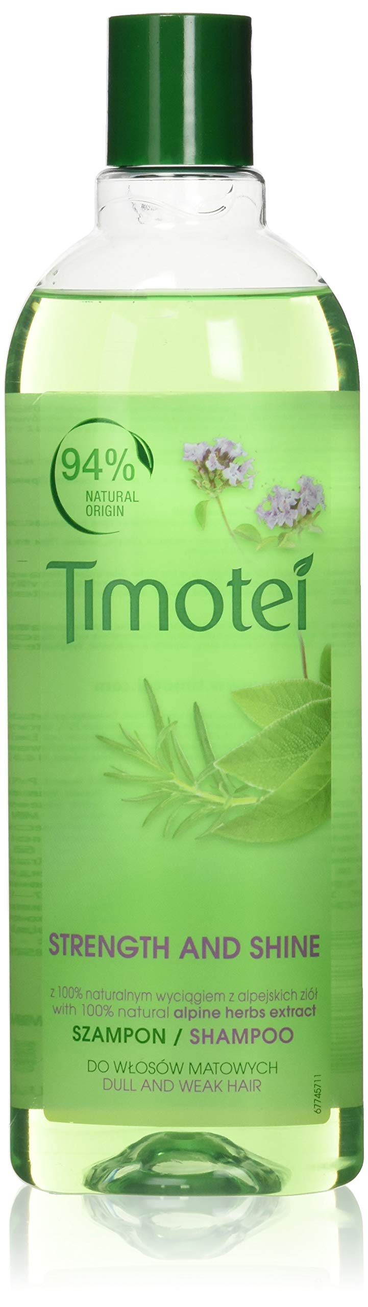 DESCRIPTION DU PRODUIT Le shampooing Timotei Strength Shine est un nettoyant fortifiant qui libère le cuir chevelu des dépôts et renforce la structure des cheveux elle-même et donne aux cheveux une brillance soyeuse.