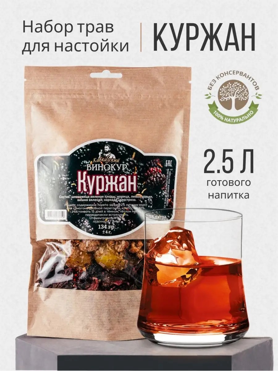 Смесь "Куржан" включает натуральные добавки, сушеные травы и фрукты, придаст вашему самогону неповторимый вкус и аромат. Джин Куржан с ягодами шелковицы имеет в меру терпкий сладковатый вкус с пряными нотками можжевельника. Напиток можно настаивать на самогоне (дистилляте), водке или спирте.