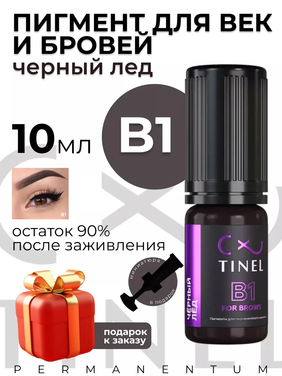Пигмент для татуажа век и бровей B1 черный лед 10 мл. Tinel B1 - Черный лед пигмент для перманентного макияжа. Самый темный, черный оттенок в бровной палитре пигментов. За счет техники нанесения можно сделать как полупрозрачный эффект, так и декоративно-визажный, плотный эффект бровей. Готов к применению. Приживляется на любой коже. После заживления сохраняет остаток до 90%. Поставляется в тонированном пластиковом флаконе, круглой формы. Емкость 10 мл Тинель это собственное производство, основанное на европейских стандартах качества, оснащено самым передовым и экологичным оборудованием, автоматическими линиями по производству, фасовке и упаковке пигментов и другой продукции. Тинель пигменты для бровей, тинель для бровей, пигменты тинель для губ. Tinel пигменты для перманента. Подходит для картриджей KWADRON квадрон, маст MUST ЕЗ, Defender дефендер и всех типов машинок Xion/ Xion mini spektra, Ruby, пузатик. Перманентум Permanentum.