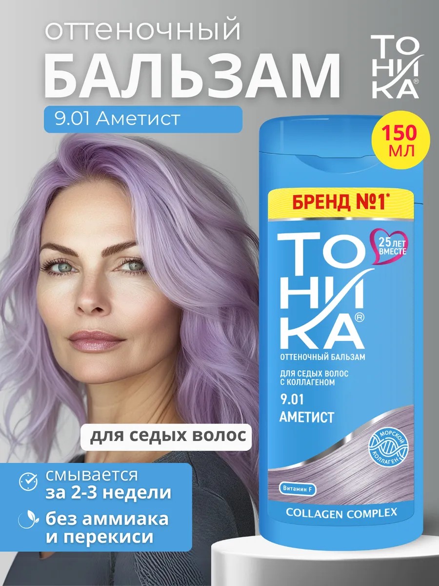 Бальзам для тонирования волос 9.01 АМЕТИСТ подчеркивает благородство природной седины, придает волосам пастельный оттенок с лёгким лавандовым подтоном. Оттеночные средства Тоника для седых волос обеспечивают стойкое тонирование даже стекловидной седины за счет идеально подобранной концентрации пигментов. Тонирующие бальзамы Тоника придают седым волосам благородный оттенок, устраняют нежелательные желтые оттенки.