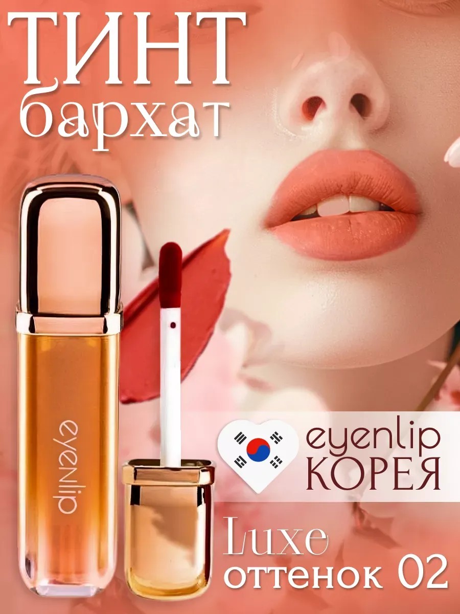 EYENLIP Deep Velvet Tint (Korea) Soft, velvety texture without shine. Creates a lightweight feel, reminiscent of soft cotton candy. Perfect coverage even on first application. Contains plant extract. Thick application on the first swipe. Doesn't leave marks even with repeated applications. A perfect substitute for liquid matte lipstick. Shade palette in the photo: Luxe Delight, Lady Petal, Retro Secret. Directions: Apply to lips with the applicator.