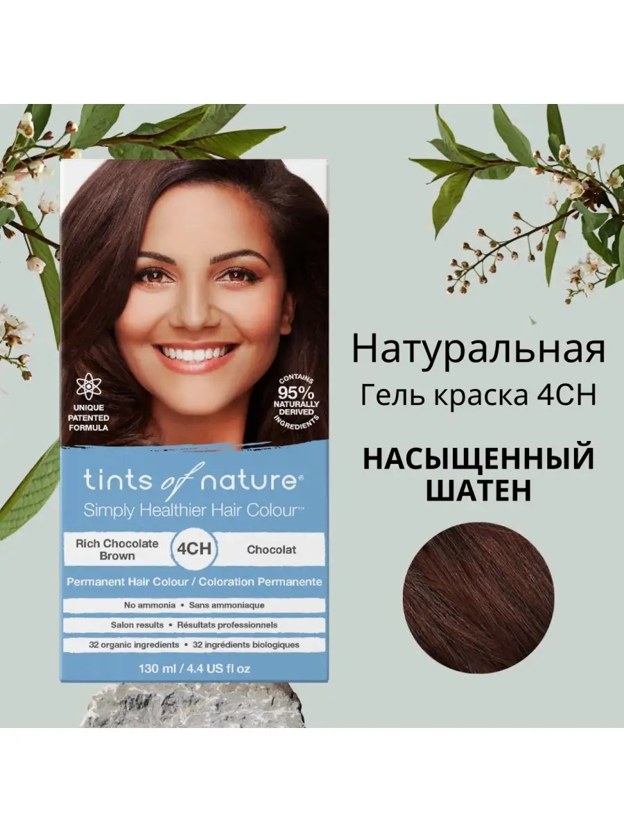 Содержит до 75% сертифицированных органических ингредиентов. Без аммиака, без парабенов, без резорцина. Уникальное сочетание натуральных и органических ингредиентов, содержит экстракты растительного происхождения и витамины С и Е, содержит экстракты апельсина, грейпфрута, окопника и ромашки, чтобы успокаивать, увлажнять и защищать волосы. Легкий в использовании. Для ошеломляющих результатов в домашних условиях, как после салона красоты. Выбирайте тон 4CH, чтобы добавить нотки шоколада Вашим волосам от натурального темного шатена или светлее. Смешивайте с 4N, чтобы полностью закрасить седину. Для получения наилучших результатов используйте наши специально разработанные шампуни и кондиционеры Tints Of Nature, чтобы цвет оставался насыщенным в течение длительного времени. Пожалуйста, проводите тест на чувствительность кожи и тест на пряди перед окрашиванием. Длительный эффект, щадящее окрашивание, готовая формула в одном флаконе, без аммиака, без парабенов, без резорцина, без глютена и ГМО, Без DEA и пропиленглюколя. Самые низкие уровни пигментов PPD в мире. Не содержит продуктов животного происхождения. Не тестируется на животных. Дерматологически протестировано.