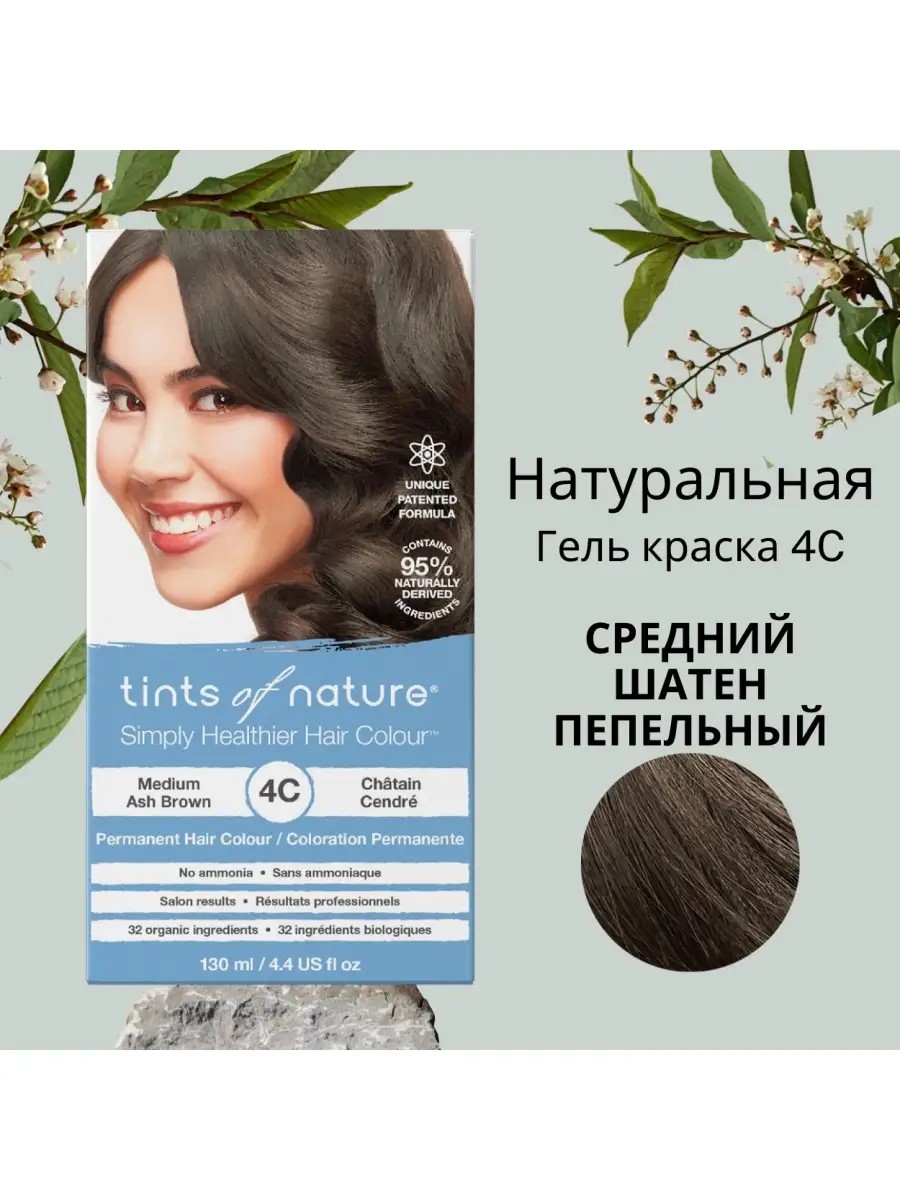 Краска Tints of Nature наполнена натуральными ингредиентами, которые питают и защищают Ваши волосы во время окрашивания, в результате вы становитесь обладателями прекрасных, блестящих волос с длительным сохранением цвета. Содержит до 75% сертифицированных органических ингредиентов. Без аммиака, без парабенов, без резорцина. Уникальное сочетание натуральных и органических ингредиентов, содержит экстракты растительного происхождения и витамины С и Е, содержит экстракты апельсина, грейпфрута, окопника и ромашки, чтобы успокаивать, увлажнять и защищать волосы. Легкий в использовании. Для ошеломляющих результатов в домашних условиях, как после салона красоты. Выберите тон 4С для нейтрализации теплых тонов на волосах от темного шатена и светлее. Смешивайте с 4N для максимального закрашивания седины. Для получения наилучших результатов используйте наши специально разработанные шампуни и кондиционеры Tints Of Nature, чтобы цвет оставался насыщенным в течение длительного времени. Пожалуйста, проводите тест на чувствительность кожи и тест на пряди перед окрашиванием. Длительный эффект, щадящее окрашивание, готовая формула в одном флаконе, без аммиака, без парабенов, без резорцина, без глютена и ГМО, без DEA и пропиленглюколя. Самые низкие уровни пигментов PPD в мире. Не содержит продуктов животного происхождения. Не тестируется на животных. Дерматологически протестировано.
