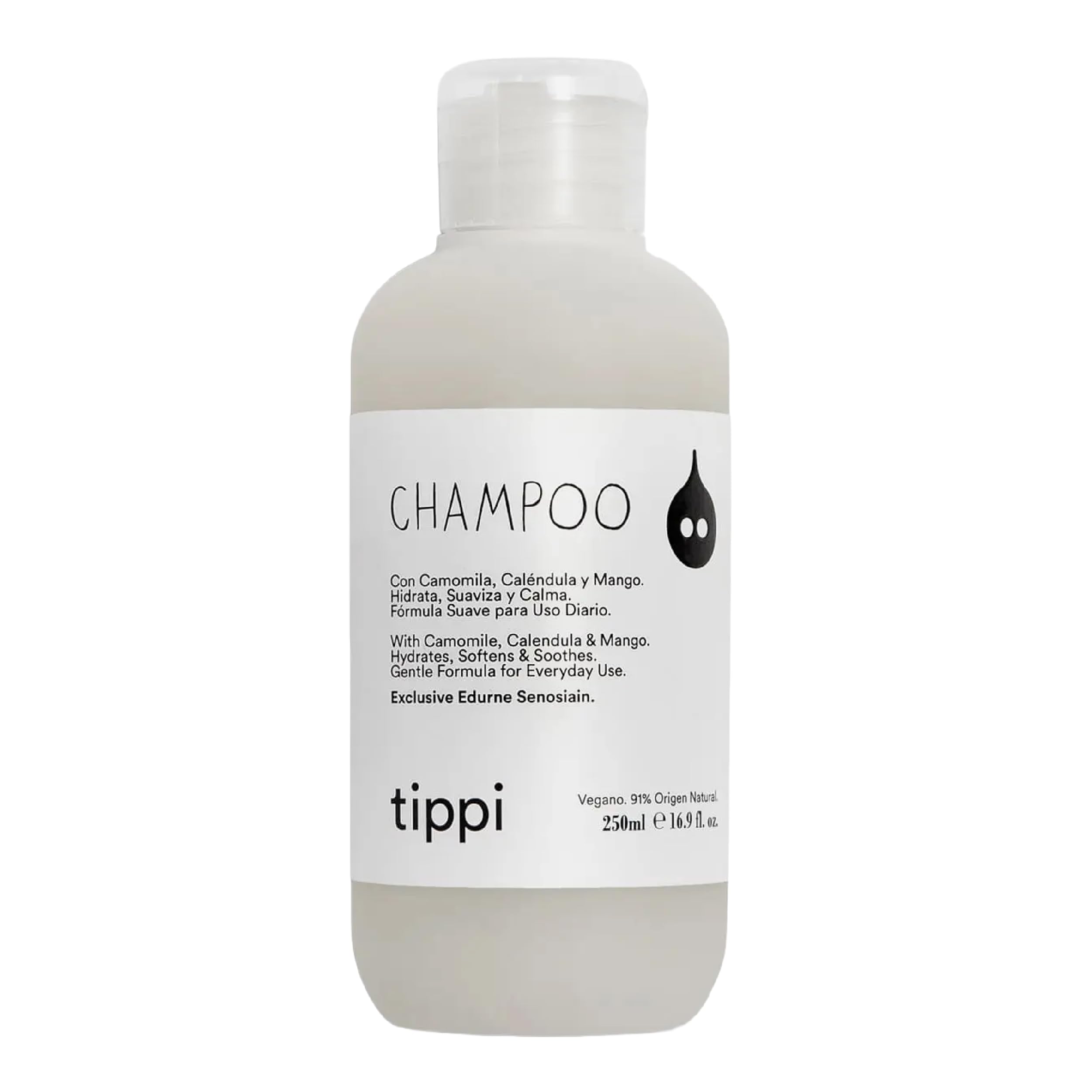 Introducing TIPPI Champoo, a gentle, natural shampoo designed for the daily care of your hair. Enriched with an exclusive blend of chamomile, calendula, and mango, this 250ml vegan formula offers a delicate yet effective washing experience. Its natural ingredients, which make up 91 of the formula, work in harmony to hydrate, soften, and soothe your scalp. For best results, apply to wet hair, gently massage with your fingertips, and rinse thoroughly. Repeat if necessary. The gentle formula makes it ideal for daily use, providing consistent and balanced care for all hair types. This exclusive creation by Edurne Senosiain represents a conscious choice for those seeking a quality vegan product for their daily hair care routine. INGREDIENTS With chamomile, calendula, and mango. Hydrates, softens, and soothes. Gentle formula for daily use. SAFETY WARNING Avoid contact with eyes. Do not ingest. See moreDaily care: Gentle formula specially designed to keep hair healthy with frequent use. Directions: Apply to wet hair, massage gently with fingertips, and rinse thoroughly. Vegan formula: 91 naturally derived product, no animal-derived ingredients, in a 250ml bottle. DEEP HYDRATION: Moisturizing shampoo that softens and soothes the scalp, ideal for daily use. Natural ingredients: Formulated with chamomile, calendula, and mango to provide gentle and effective hair cleansing.TIPPI Shampooing naturel avec camomille, calendula et mangue, végétalien, 250 mlDESCRIPTION DU PRODUIT DESCRIPTION DU PRODUIT Découvrez TIPPI Champoo, un shampooing doux et naturel conçu pour le soin quotidien de vos cheveux. Enrichi d'un mélange exclusif de camomille, calendula et mangue, cette formule végétalienne de 250 ml offre une expérience de lavage délicate et efficace. Ses ingrédients naturels, qui constituent 91 de la formule, travaillent en harmonie pour hydrater, adoucir et apaiser votre cuir chevelu. Pour de meilleurs résultats, appliquez sur cheveux humides, massez doucement avec le bout des doigts et rincez abondamment. Si nécessaire, vous pouvez répéter l'application. La formule douce le rend idéal pour un usage quotidien, offrant un soin constant et équilibré pour tous les types de cheveux. Cette création exclusive d'Edurne Senosiain représente un choix conscient pour ceux qui recherchent un produit végétalien de qualité pour leur routine capillaire quotidienne. INGRÉDIENTS Avec camomille, calendula et mangue. Hydrate, adoucit et apaise. Formule douce pour un usage quotidien. AVERTISSEMENT DE SÉCURITÉ Évitez tout contact avec les yeux, ne pas ingérer. Voir plusSoin quotidien : formule douce spécialement conçue pour garder les cheveux en bonne santé avec une utilisation fréquente. Mode d'emploi : appliquer sur cheveux humides, masser doucement avec le bout des doigts et rincer abondamment. Formule végétalienne : produit 91 d'origine naturelle, sans ingrédients d'origine animale, en présentation de 250 ml. HYDRATATION PROFONDE : shampooing hydratant qui adoucit et apaise le cuir chevelu, idéal pour un usage quotidien. Ingrédients naturels : formulé avec de la camomille, du calendula et de la mangue pour fournir un nettoyage doux et efficace des cheveux.