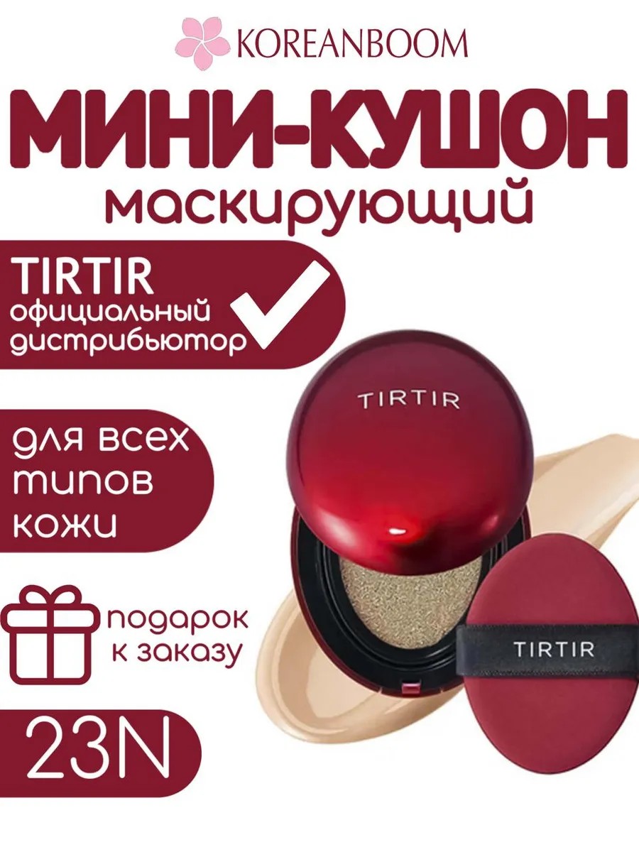 Стойкий кушон с полуматовым финишем TIRTIR Mask Fit Red Cushion SPF40 PA++ — хит бренда, который маскирует морщины и покраснение, скрывает пигментные пятна и тёмные круги, фиксируется на коже до 72 часов. Плотное однородное покрытие не осыпается и не скатывается, выравнивает тон и придаёт естественное сияние, предотвращает жирный блеск. Оказывает антиоксидантное действие и дополнительно защищает от солнца. Содержит экстракты гибискуса и прополиса, астаксантин, ниацинамид и аденозин, а также физические УФ-фильтры.