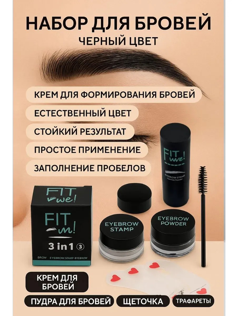 Ищете способ быстро и без усилий создать идеальные брови? Представляем набор для бровей FIT ME! 3 в 1, который включает всё необходимое: крем для бровей, пудру, щеточку и трафареты. Подходит как для новичков, так и для профессионалов.