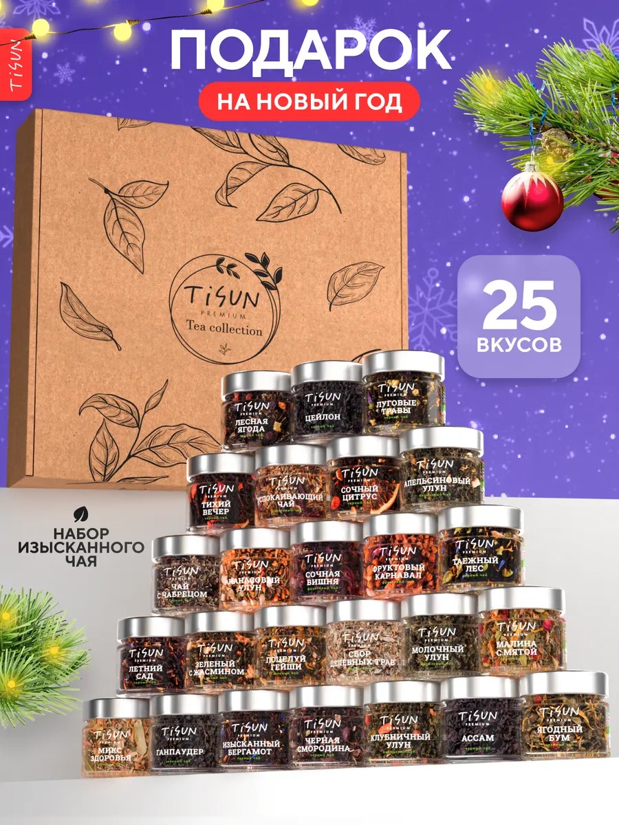 TiSun Чай листовой набор подарочный в баночках ассорти, 25 шт