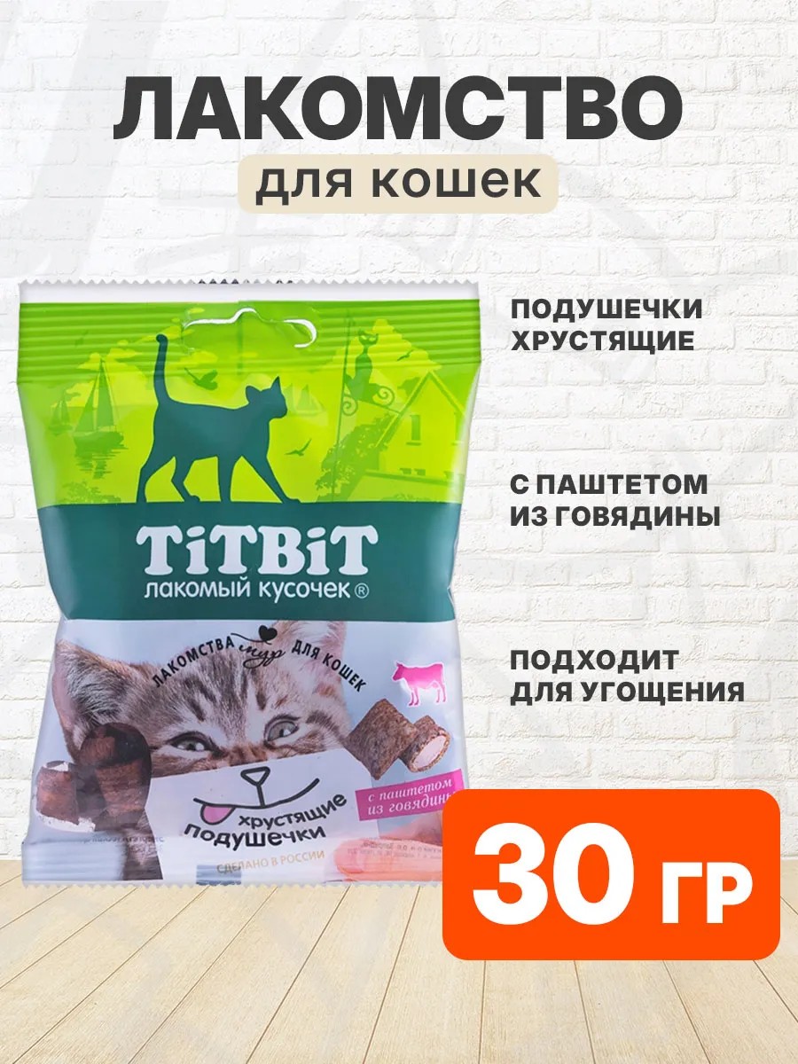 Хрустящие подушечки Tit bit – это вкусное и полезное лакомство. Ключевые особенности: