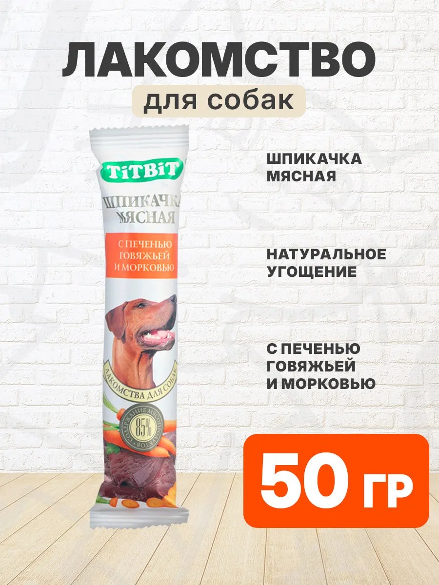 | Комплектация | Лакомство для собак шпикачка с печенью говяжьей и морковью 50 гр - 1 шт |