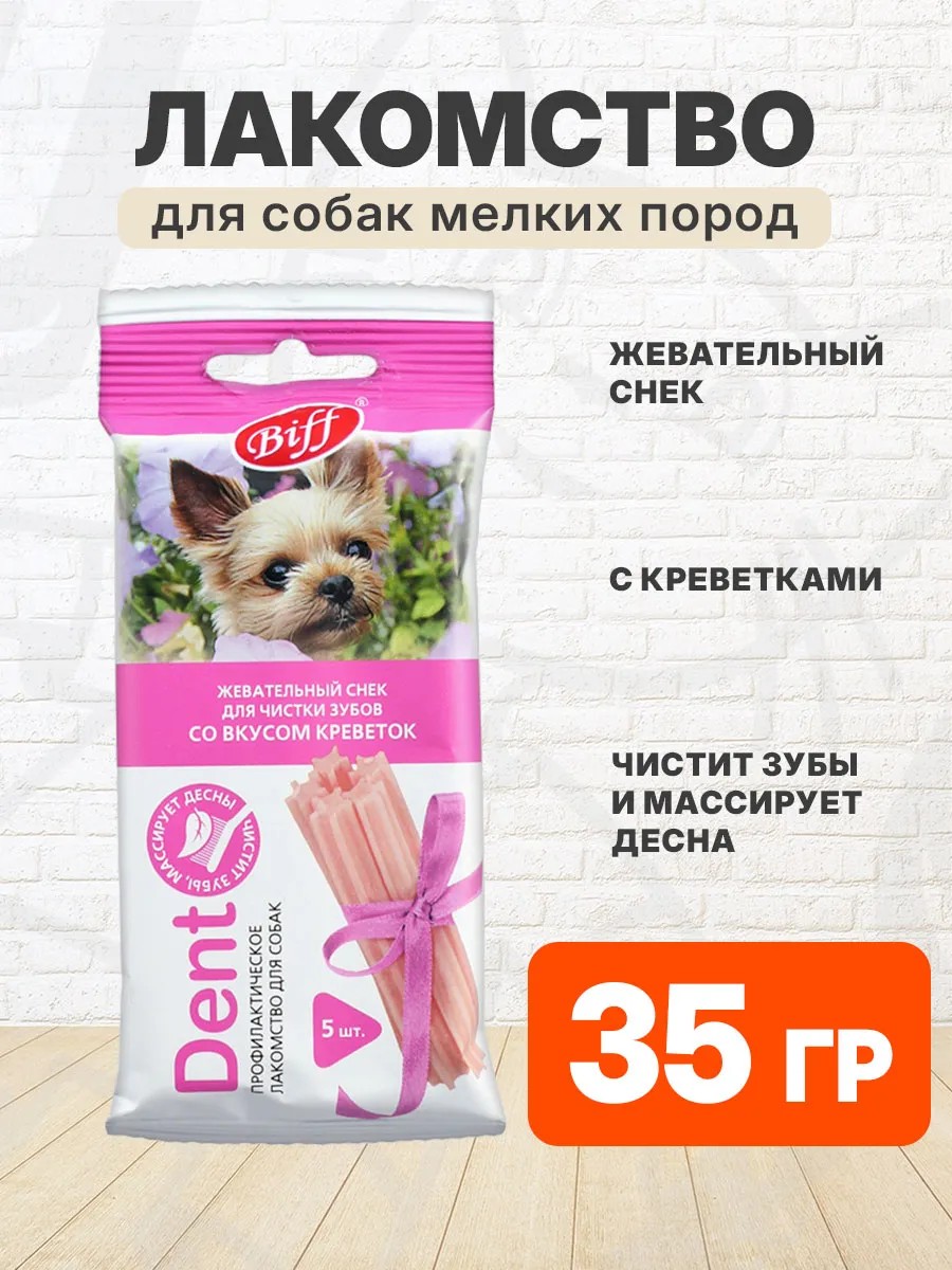 | Package contents | Dent treats for small breed dogs, chewable snacks for teeth with shrimp, 5 pcs - 1 pack |