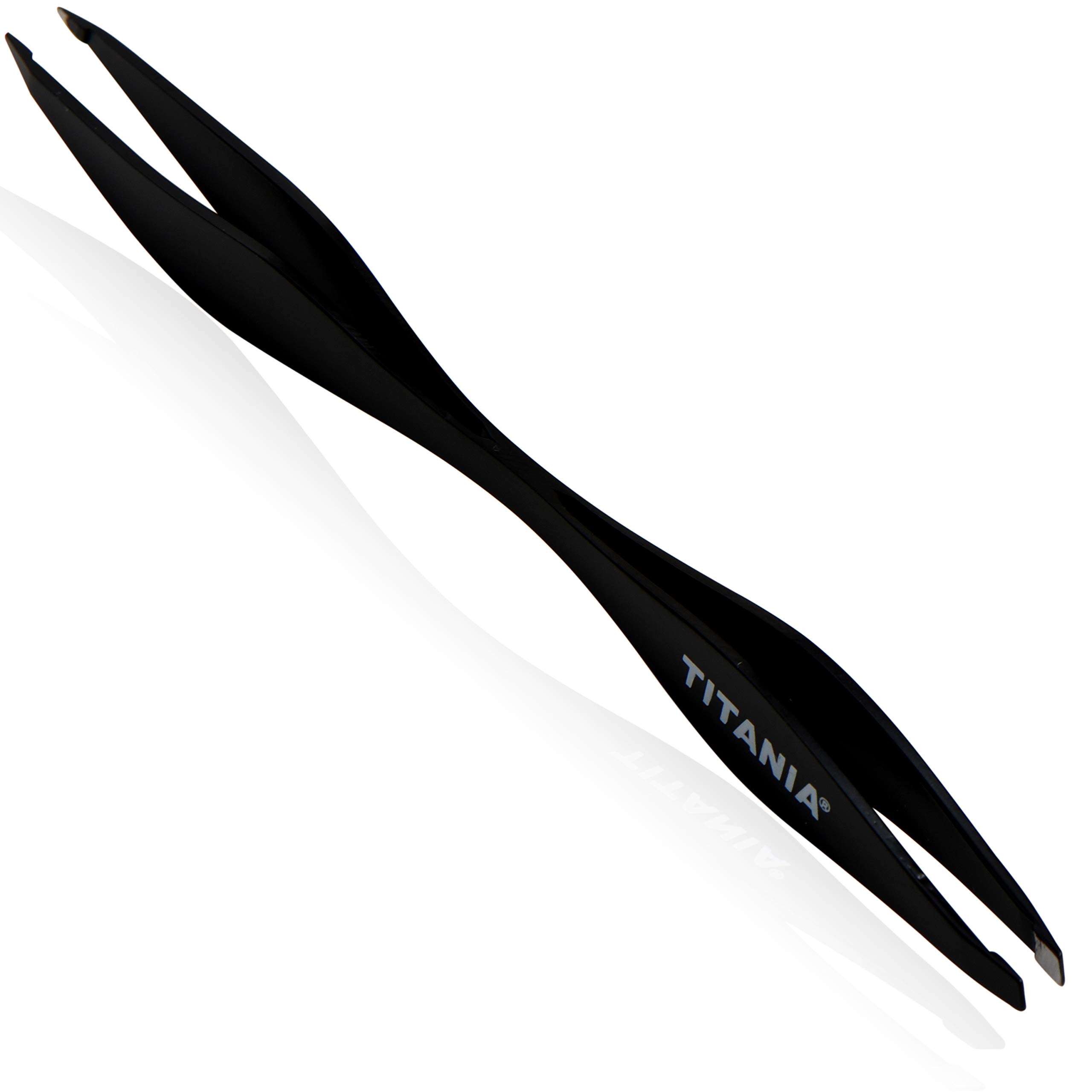 : B079TPQB6S. gl_product_group_type: gl_beauty. product_type: TWEEZER. Titania Germany Double End Angled Tip Pointed Splitter Tweezers - Medical Grade Stainless Steel - Easy to Use Non-Slip Grip for Personal Use - Matte Black. Double Tweezers 2950.