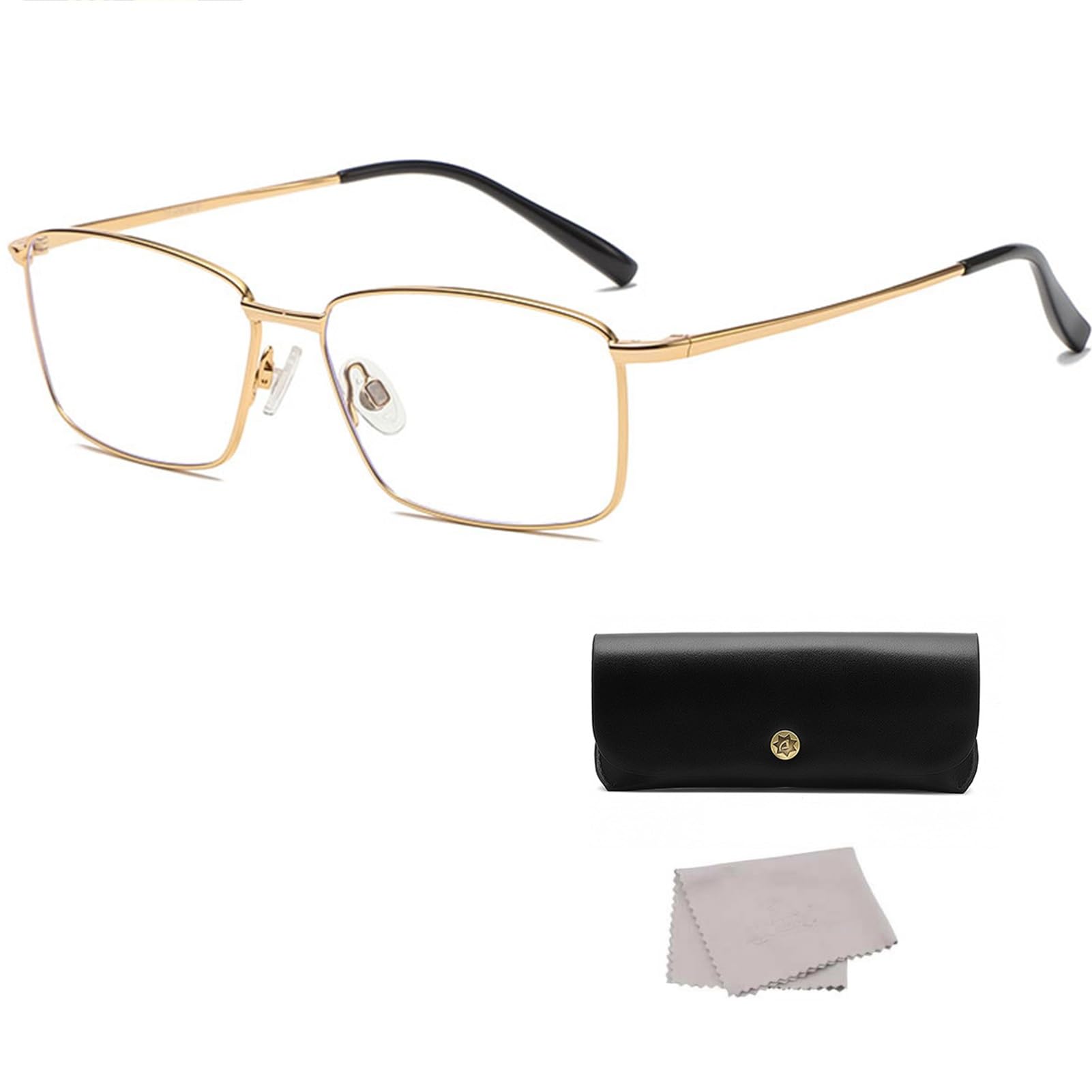 Titanium Reading Glasses for Men, Blue Light Blocking Computer Reader, Rectangular Frame Lightweight Eyeglasses 2.0x Gold